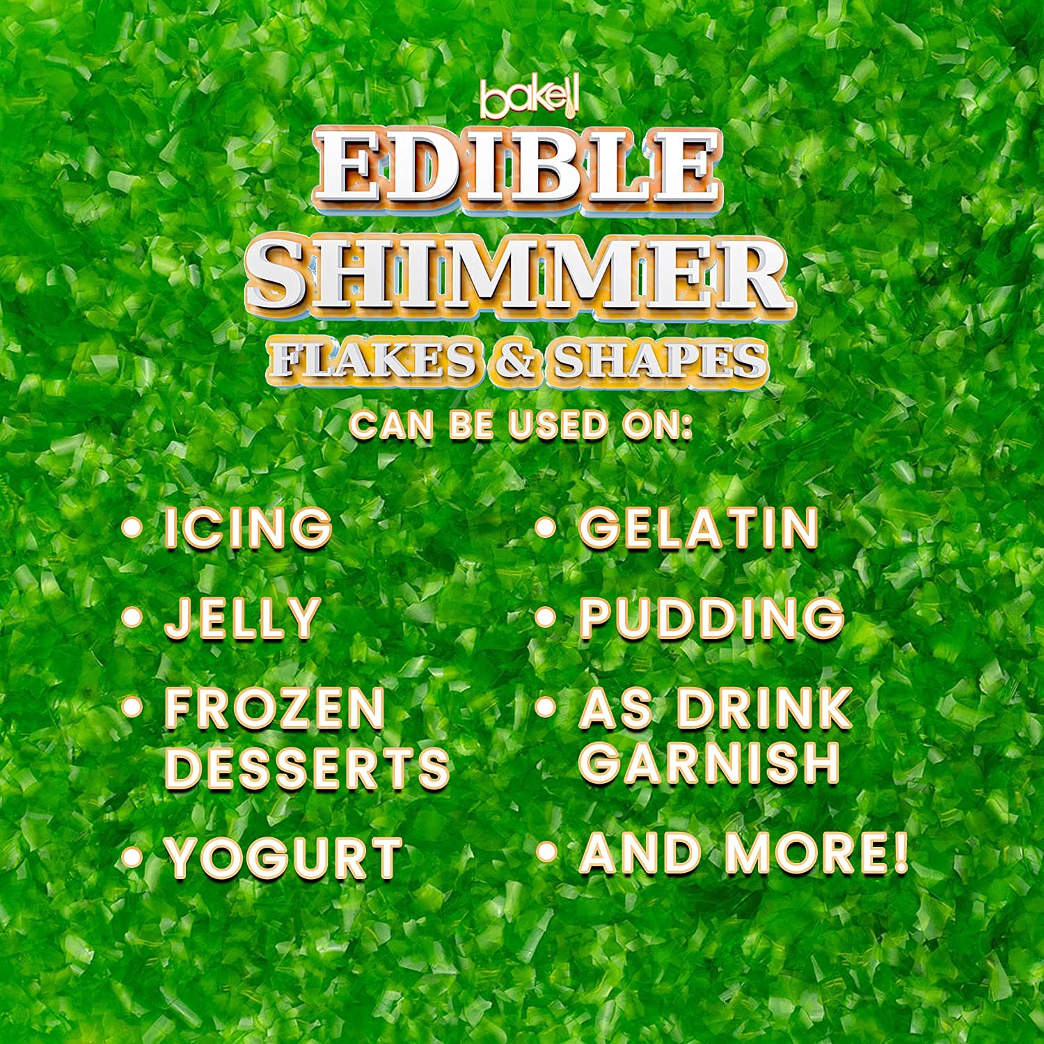BAKELL Edible Shimmer Flakes, | Vegan Green Edible Glitter Flakes | KOSHER Certified | Halal Certified | 100% Edible & Food Grade| Cakes, Cupcakes, Cake Pops, Vegan Glitter Shimmer