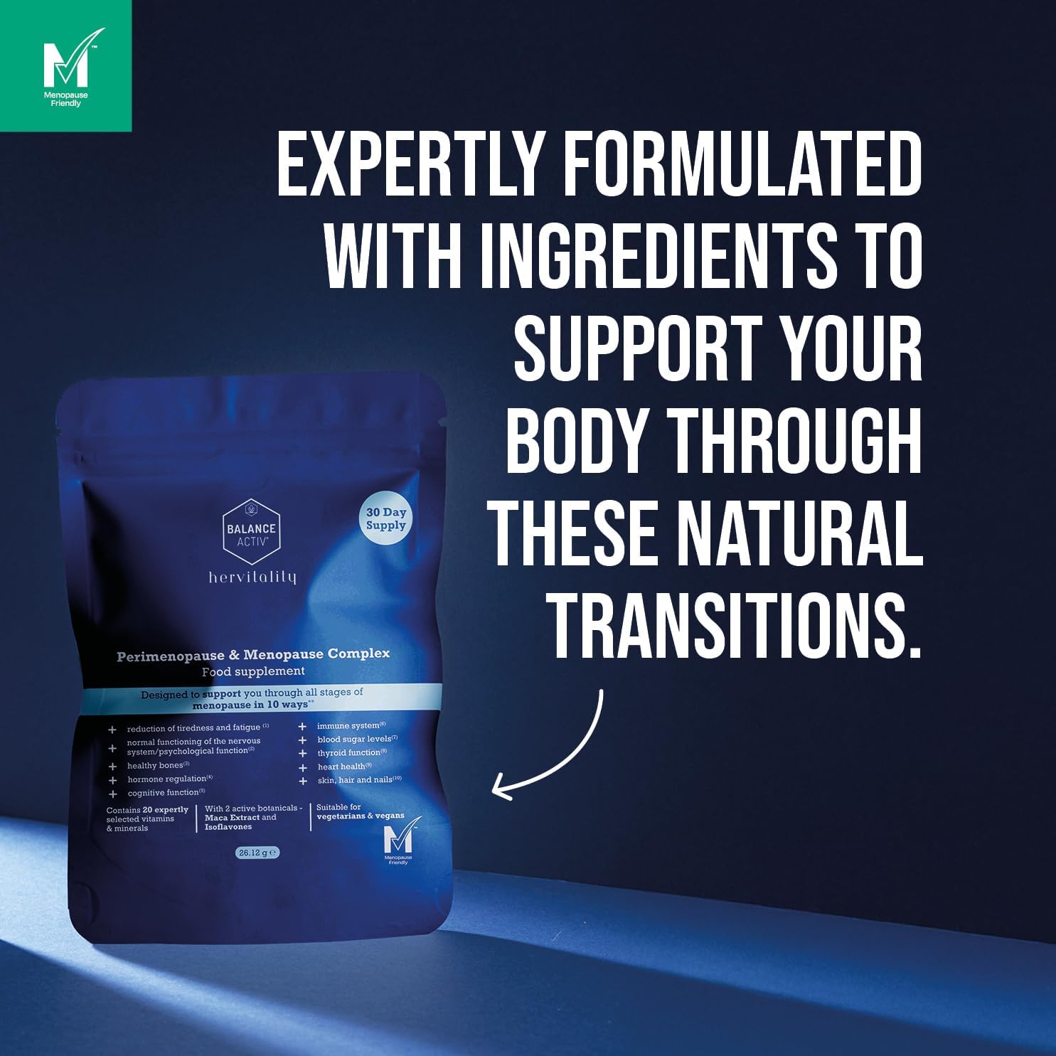 Balance Activ Hervitality, Perimenopause & Menopause Complex, Hormone Balancing, Maintain Wellbeing With Essential Vitamins, Minerals And Botanicals, Vegan, 30 Capsules, 1 Pack