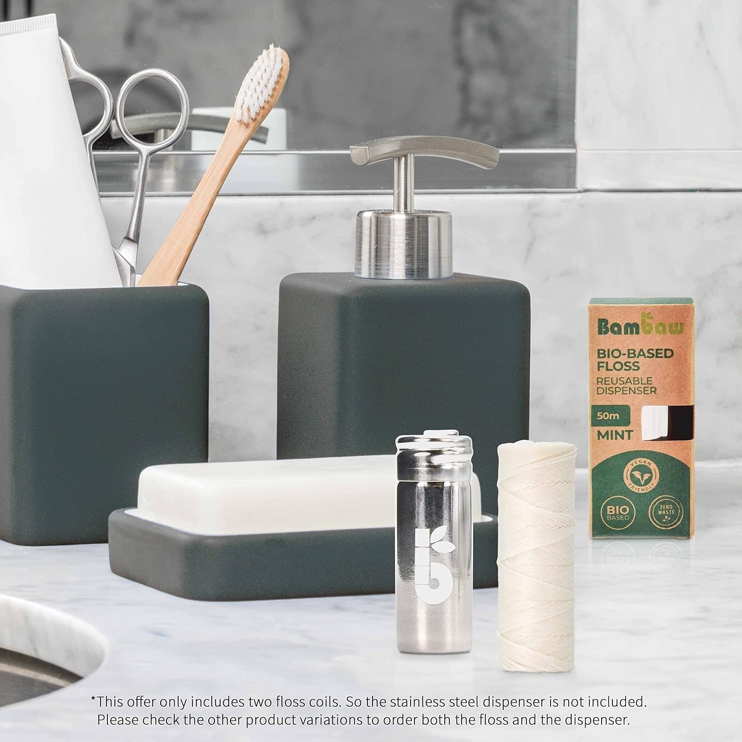 Bambaw Dental Floss | Mint Green Floss | Candelilla Wax | Zero Waste Dental Floss | Refillable Box (Vegan Floss - 2 Refills)
