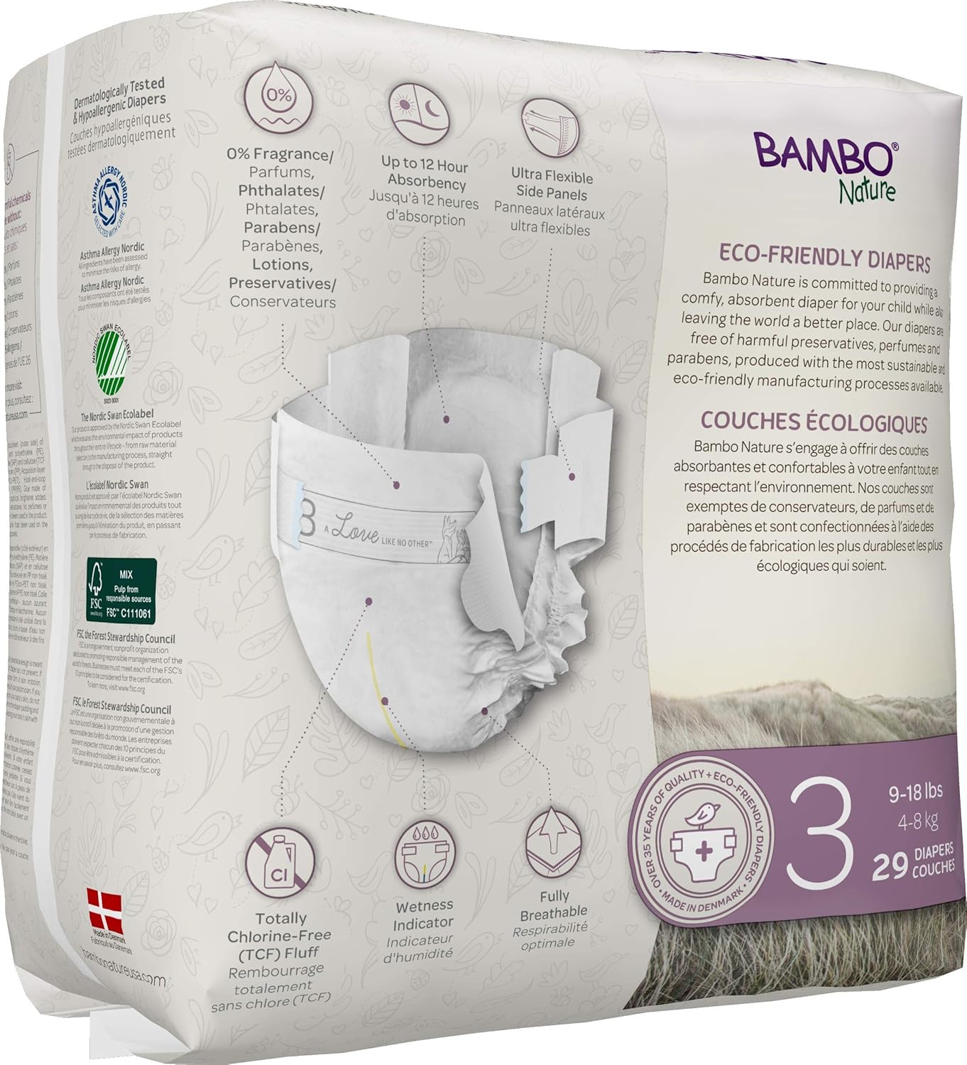 Bambo Nature Premium Baby Diapers - French/English Packaging, Size 3, 29 Count