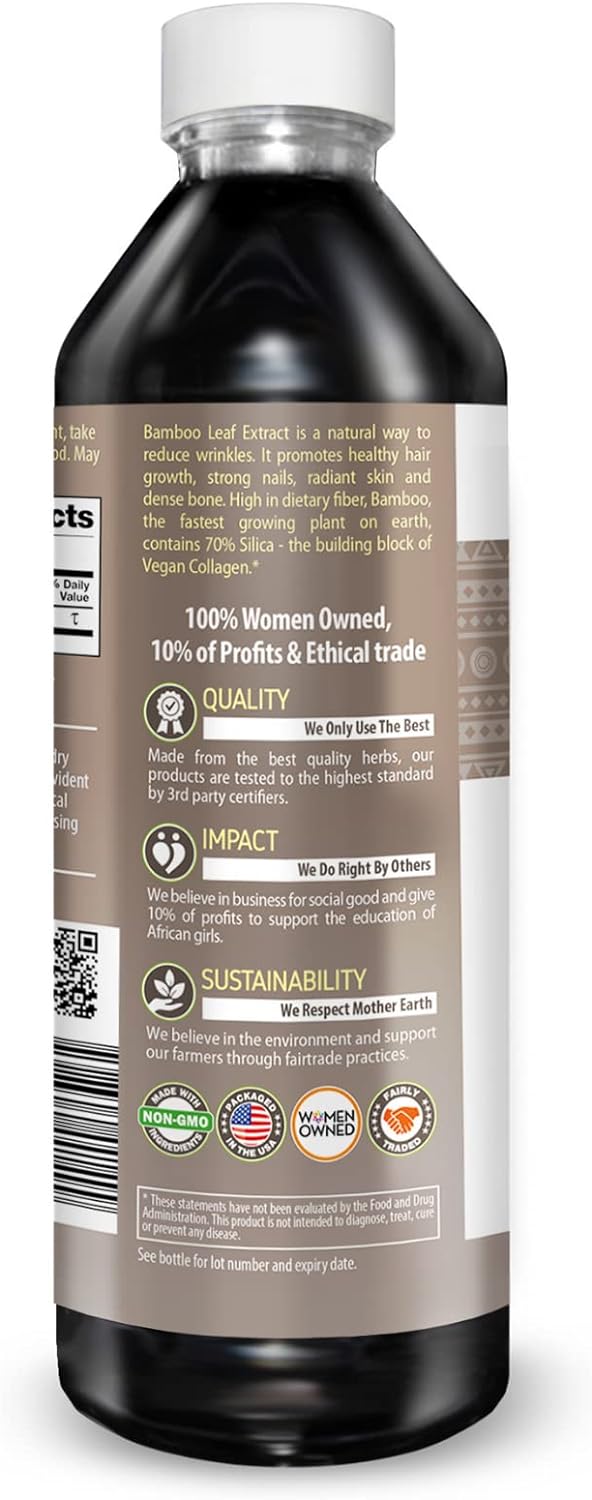?? Want Healthier, Faster-Growing and Fuller Hair with less breakage for all Hair Types? Concerned about growing back your hairline or your edges? Want longer eye lashes? Concerned about hair loss? Seeking longer, healthier nails and youthful skin? Want to use the best natural superherb nutrient that works quickly without side effects10?? How Bamboo Liquid Extract 15X works: Bamboo is the fastest growing plant on earth and contains the highest amount of silica of any plant. Silica is the building block of collagen and biotin which help to build up keratin in the body. Keratin is vital for healthy hair, skin, nails. It supports joint and bone health. Bamboo is rich in Antioxidant, MSM, Vitamins (Vitamin B2, B12, C & K) Minerals (Zinc, Copper, Magnesium, Calcium, Silica, Potassium), Flavonoids, Polyphenols, and Amino Acids10?? 100% pure bamboo extract provides top-quality natural silica. Bamboo Extract is a great way to ensure healthy nutrient intake for cell regeneration, anti-aging and youth rejuvenation. Bamboo extract nourishes vital tissues and supports cell DNA for healthy life extension. Many people know about horsetail grass as a great source of silica. However, bamboo provides about 70% silica compared to horsetail which yields just about 7% silica! Enjoy ou new beauty secret10?? Bamboo leaf supports Vibrant & Healthy Skin - Bamboo is often found in hair and skin caresupplements because it is rich in silica, which is essential for healthy skin. Natural Silica helps keep the skin elastic and hydrated and promotes collagen production for hair follicles and nails cuticle. Our Bamboo Extract is a highly concentrated, fast actiting hair growth supplement and is a great addition to your diet and daily routine10?? Bamboo improves nutrient deficiency. It is difficult to get all the nutrients you need from food alone. Bamboo extract supplement will provide the nutrients that may be missing from your diet and give you the powerful complex that includes B vitamins, nutrients, biotin, and collagen. As we grow older, the silica in our bodies deplete and we need supplementation to rejuvinate our cells and keep us looking younger, with glowing skin, and ingredients to thicken and strengthen our nails and hair10