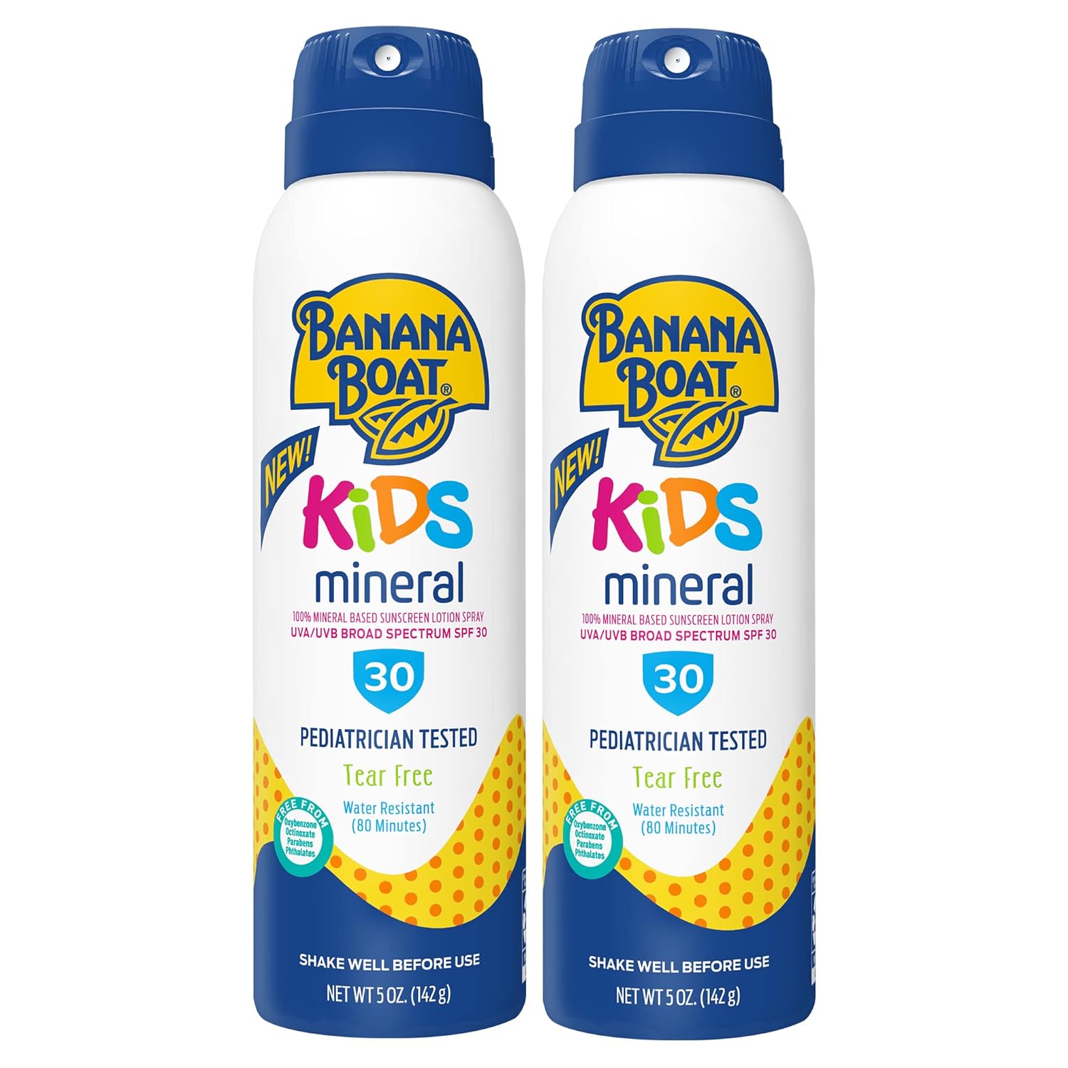 Banana Boat Kids Mineral Sunscreen Spray, Twin Pack | Kids Sunscreen Spray, Broad Spectrum Spf 30 Sunscreen Spray, Kids Spray Sunscreen, Mineral Sunscreen For Kids, 5Oz (Pack Of 2)