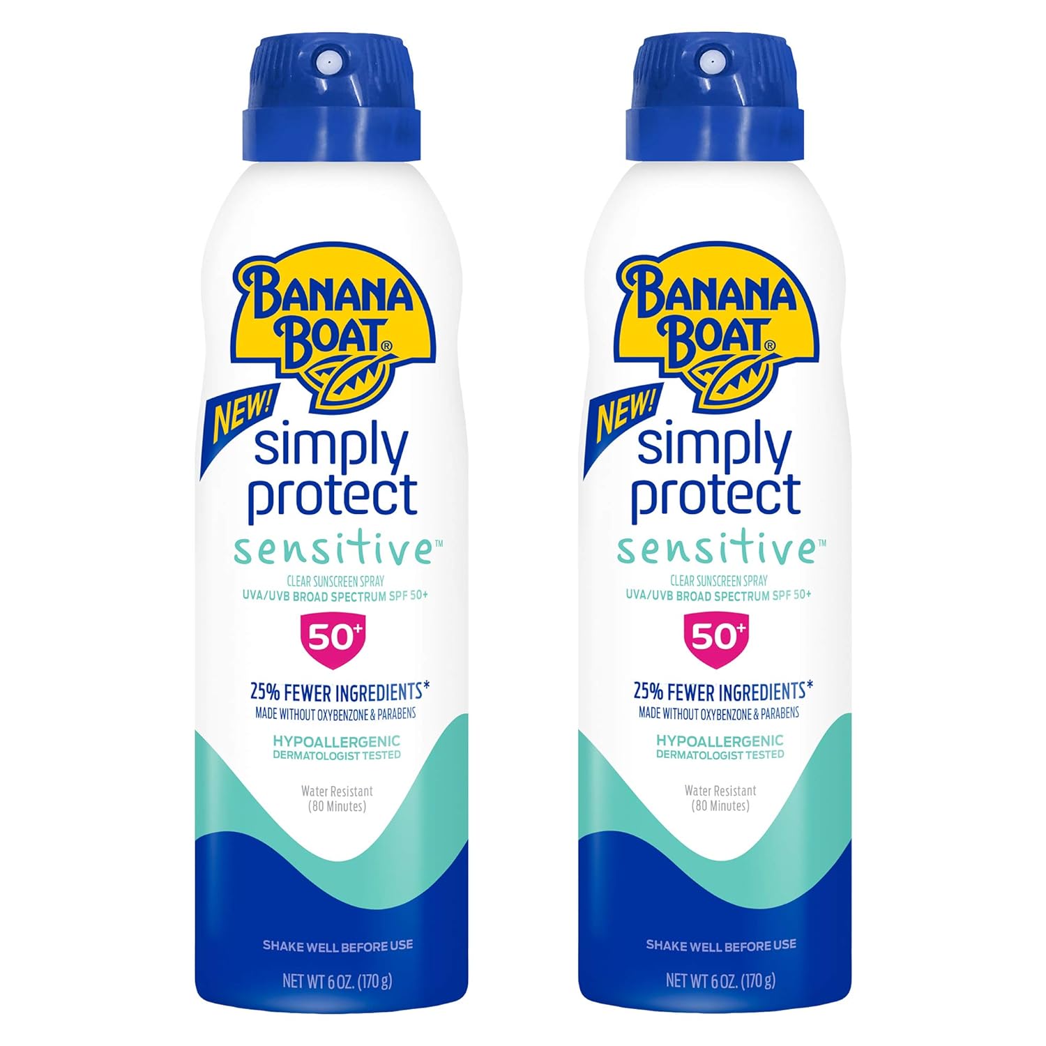 Banana Boat Mineral Enriched Sunscreen, Sensitive Skin, Broad Spectrum Spray, Spf 50, 6Oz. - Twin Pack