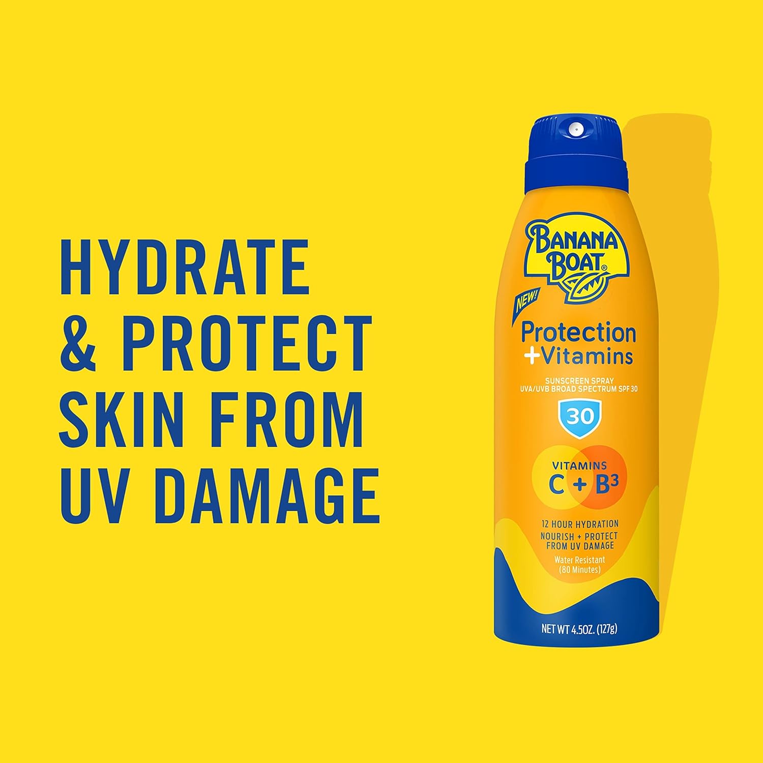 Banana Boat Protection + Vitamins Sunscreen Spray Spf 30 | Moisturizing Sunscreen With Vitamin C & Niacinamide | Banana Boat Spray Sunscreen, Vitamin B3 & Vitamin C Sunscreen, 4.5 Oz