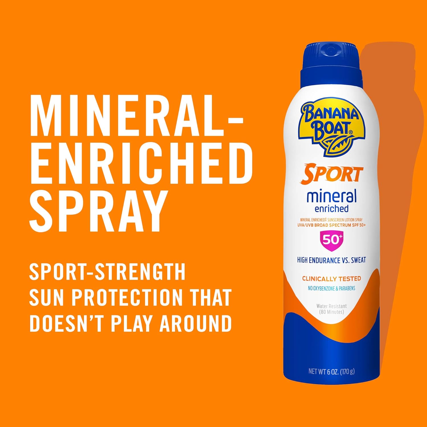 100% BROAD SPECTRUM COVERAGE — Banana Boat sunscreen spray protects from UVA/UVB rays with a superior mineral sunscreen SPF 50 formula that’s water and sweat resistant up to 80 minutes
