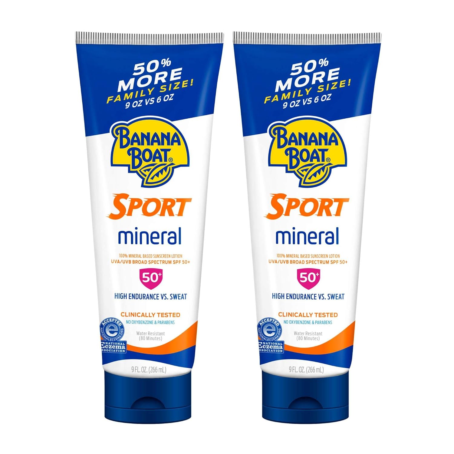 Banana Boat Sport 100% Mineral, Reef Friendly, Broad Spectrum Sunscreen Lotion, Spf 50, 9Oz. , 2 Count (Pack Of 1)