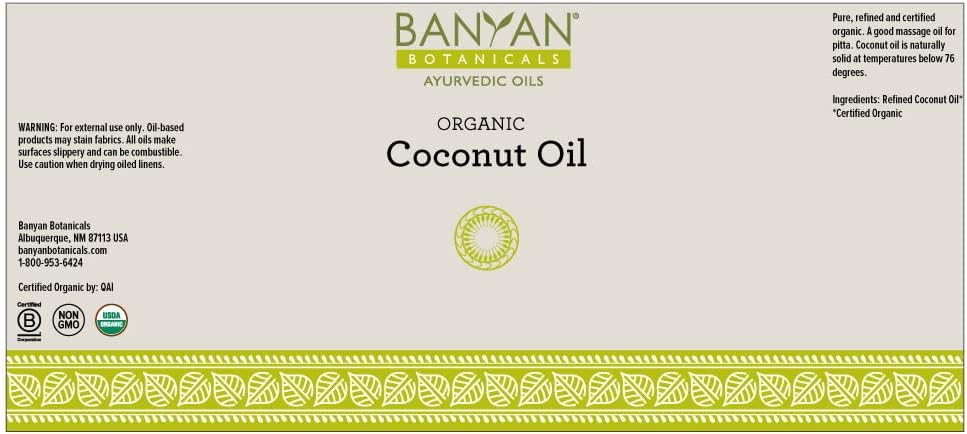 DESCRIPTION : Banyan Botanicals Coconut Oil, Certified Organic, Wide-Mouthed Jar, 30 oz - Pure, Refined - A Good Massage Oil for Pitta