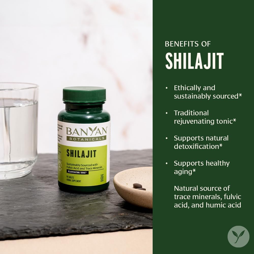 Banyan Botanicals Shilajit Organic And Sustainable Mineral Pitch Mineral-Rich Shilajit Supplement For Natural Detoxification And Healthy Aging* 90 Tablets Non Gmo Sustainably Sourced Vegan