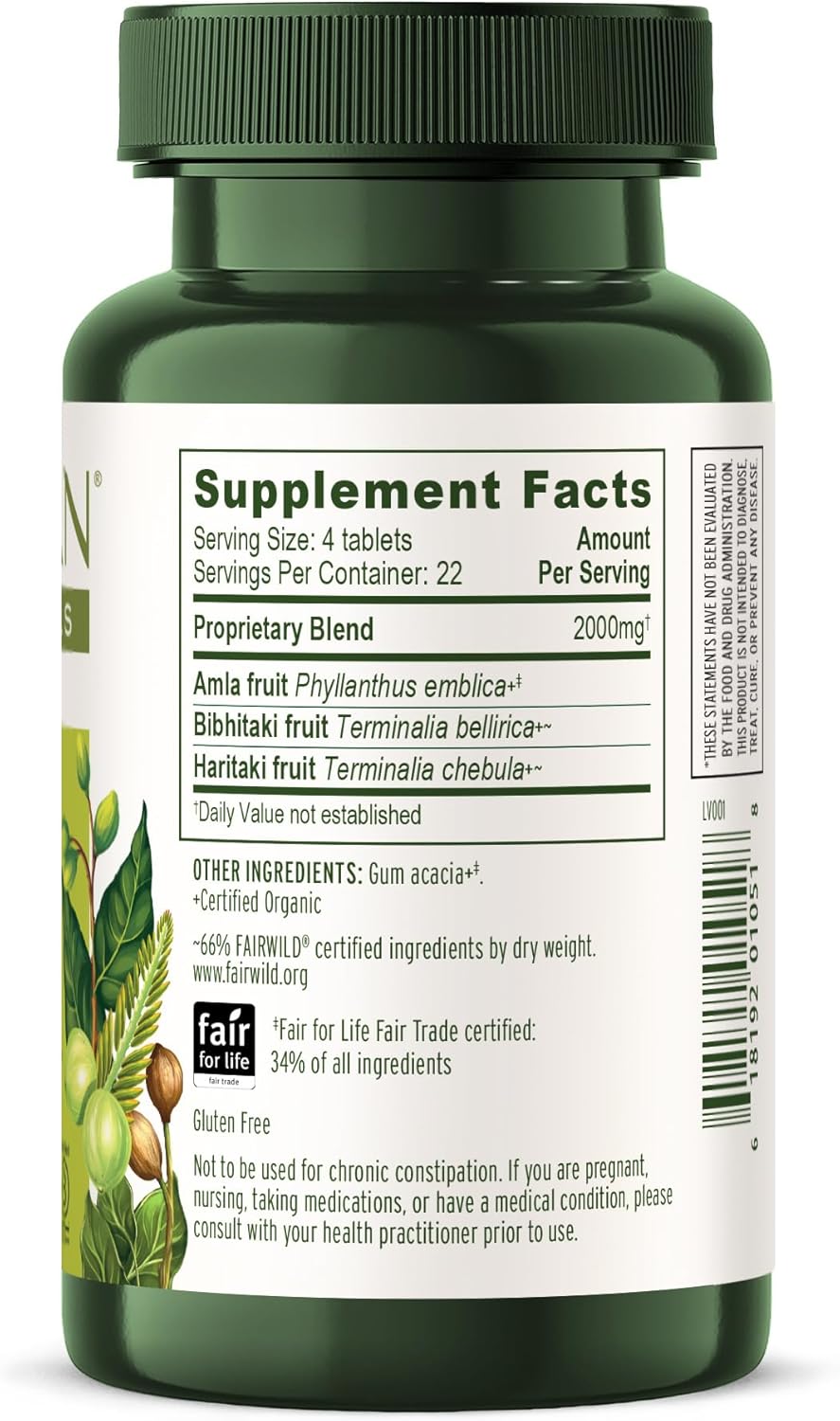 About this item TRIPHALA is recommended and used more than any other Ayurvedic herbal formulation. Translated as “three fruits” in Sanskrit, this blend of amla, haritaki, and bibhitaki is renowned for its ability to both detoxify and replenish the system.* A NATURAL SOURCE OF ANTIOXIDANTS, as well as tannins, phytosterols, and flavonoids, triphala supports healthy digestion and absorption, helps maintain regularity, and assists natural internal cleansing.* MADE FROM THE HIGHEST QUALITY organic triphala powder, this traditional formula is an excellent foundation for a healthy daily routine. Benefits can be experienced as quickly as within a day, although it may take longer for some.* BANYAN BOTANICALS is committed to producing the highest quality Ayurvedic products using USDA certified organic herbs that are sustainably sourced and fairly traded. All our products are 3rd party tested to ensure product quality and safety. THE BANYAN GUARANTEE: If for any reason you’re not satisfied with one of our products, we will gladly accept returns for a full product refund. › See more product details,TRIPHALA is recommended and used more than any other Ayurvedic herbal formulation. Translated as “three fruits” in Sanskrit, this blend of amla, haritaki, and bibhitaki is renowned for its ability to both detoxify and replenish the system,A NATURAL SOURCE OF ANTIOXIDANTS, as well as tannins, phytosterols, and flavonoids, triphala supports healthy digestion and absorption, helps maintain regularity, and assists natural internal cleansing,MADE FROM THE HIGHEST QUALITY organic triphala powder, this traditional formula is an excellent foundation for a healthy daily routine. Benefits can be experienced as quickly as within a day, although it may take longer for some,BANYAN BOTANICALS is committed to producing the highest quality Ayurvedic products using USDA certified organic herbs that are sustainably sourced and fairly traded. All our products are 3rd party tested to ensure product quality and safety,THE BANYAN GUARANTEE: If for any reason you’re not satisfied with one of our products, we will gladly accept returns for a full product refund