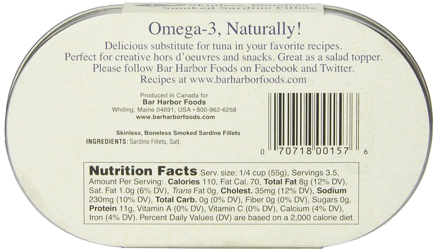Bar Harbor Smoked Skinless Boneless Sardine Fillets, 6.7 Oz