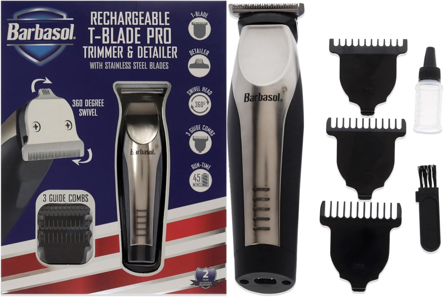 Barbasol Xtreme Digital Lifestyle Accessories T Blade Pro Trimmer Detailer Rechargeable Swivel Head Black Body Rubber Oil Nickel