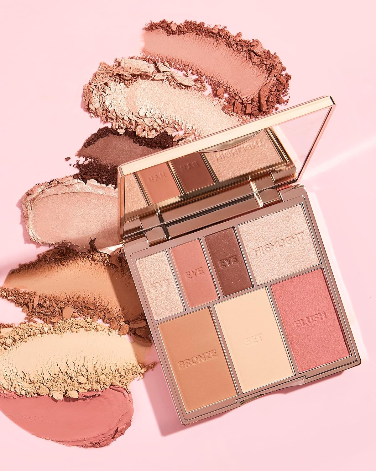 Bare Basics Face & Eye Palette From Sculpted By Aimee (Sunbeam 01) - Travel-Friendly, Nude Look Eyeshadow, Highlight, Bronzer, Blush & Setting Powder