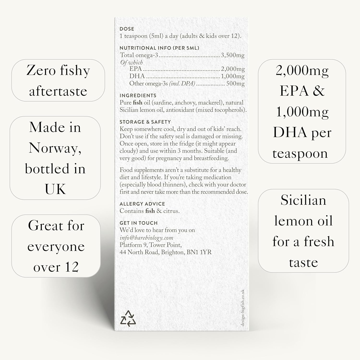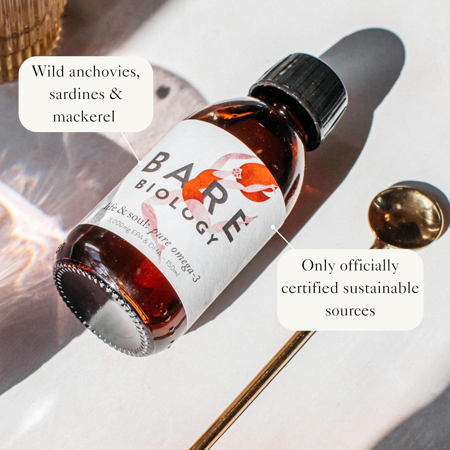 Bare Biology Maximum Strength Pure Omega 3 Fish Oil Liquid 3,000Mg - Life & Soul Liquid Omega 3 (1 To 2 Months Supply - 150Ml) Epa 2000Mg Dha 1000Mg, Supports Heart, Brain Function & Eye Health
