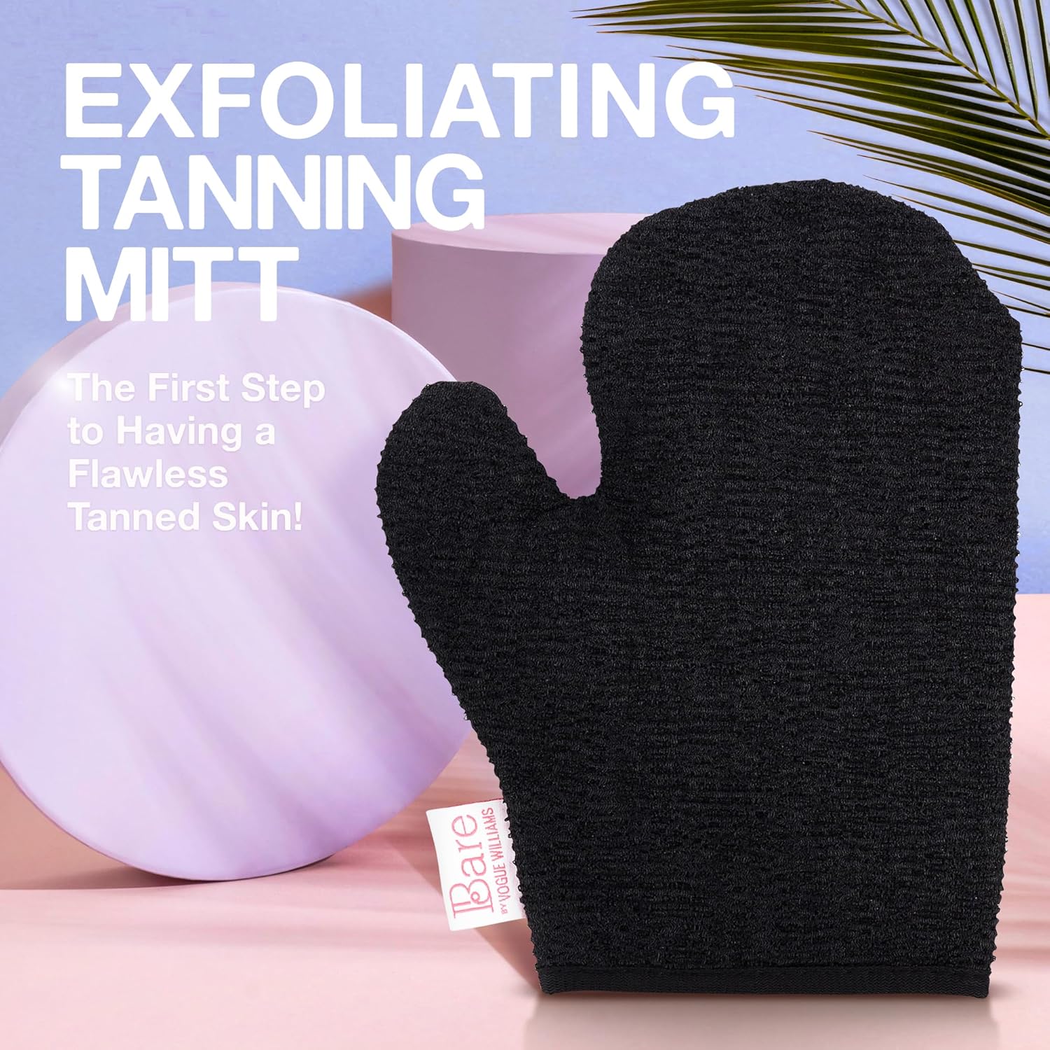 Bare By Vogue Exfoliating Mitt - Double-Sided Tan Mitt For Deep Exfoliation, Built-In Thumb For Secure Grip - Removes Dead Skin For Smooth, Radiant Complexion (One Size, Black)