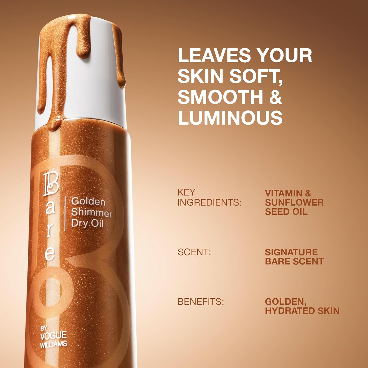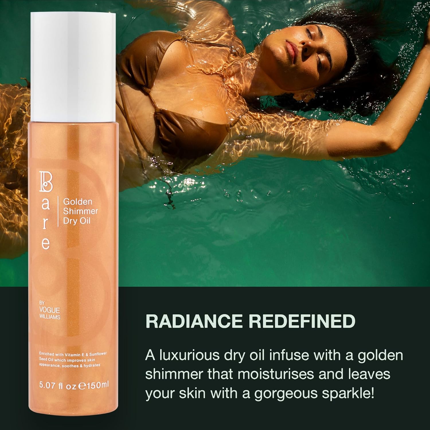 Bare By Vogue Golden Shimmer Dry Oil - Moisturise And Hydrate Your Skin With Gorgeous Sparkle - Lightweight & Quick-Drying Face & Body Shimmer Oil, 150Ml