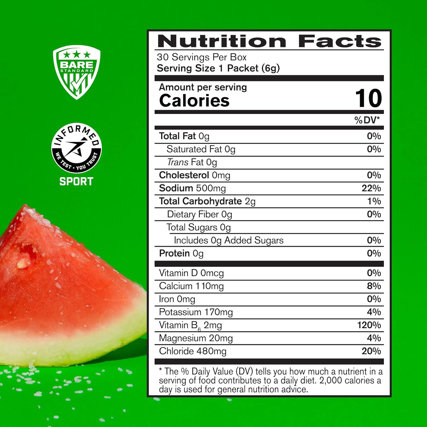 Bare Performance Nutrition, Bpn Electrolytes Go Packs, Hydration Drink Mix Powder Packets, Salted Watermelon, 30 Servings