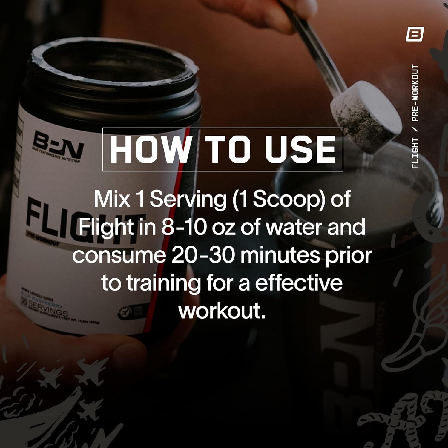 About this item BPN FLIGHT PRE WORKOUT: Flight is our powerful pre-workout supplement created to boost your power output, improve focus and increase your energy, without the crash or jitters. Prepare for the best workouts of your life! Pink Lemonade - 30 Servings PRIMARY BENEFITS: Supports strong energy and intense mental focus to prepare for training sessions. Supports improved endurance, power output and muscle pumps for more effective workouts. Excellent mixability offered in a variety of refreshing flavors ENERGY WITHOUT THE CRASH: An intense burst of energy and focus, without the dreaded "post-workout crash" due to Infinergy (Di-Caffeine Malate) that buffers the salts in caffeine, allowing easier digestion and replenishing energy produced by caffeine THIRD-PARTY TESTED FOR BANNED SUBSTANCES: Informed Sport certified products are tested for prohibited substances ensuring you feel comfortable consuming. Date printed on bottle is the Manufacturing Date. Expiration Date is two years after MFG date BARE PERFORMANCE NUTRITION: We are a team of driven leaders who are passionate about helping others reach their highest levels of fitness with training, nutrition, and supplementation. We live and train behind the motto, "GO ONE MORE" › See more product details,BPN FLIGHT PRE WORKOUT: Flight is our powerful pre-workout supplement created to boost your power output, improve focus and increase your energy, without the crash or jitters. Prepare for the best workouts of your life! Pink Lemonade - 30 Servings,PRIMARY BENEFITS: Supports strong energy and intense mental focus to prepare for training sessions. Supports improved endurance, power output and muscle pumps for more effective workouts. Excellent mixability offered in a variety of refreshing flavors,ENERGY WITHOUT THE CRASH: An intense burst of energy and focus, without the dreaded "post-workout crash" due to Infinergy (Di-Caffeine Malate) that buffers the salts in caffeine, allowing easier digestion and replenishing energy produced by caffeine,THIRD-PARTY TESTED FOR BANNED SUBSTANCES: Informed Sport certified products are tested for prohibited substances ensuring you feel comfortable consuming. Date printed on bottle is the Manufacturing Date. Expiration Date is two years after MFG date,BARE PERFORMANCE NUTRITION: We are a team of driven leaders who are passionate about helping others reach their highest levels of fitness with training, nutrition, and supplementation. We live and train behind the motto, "GO ONE MORE