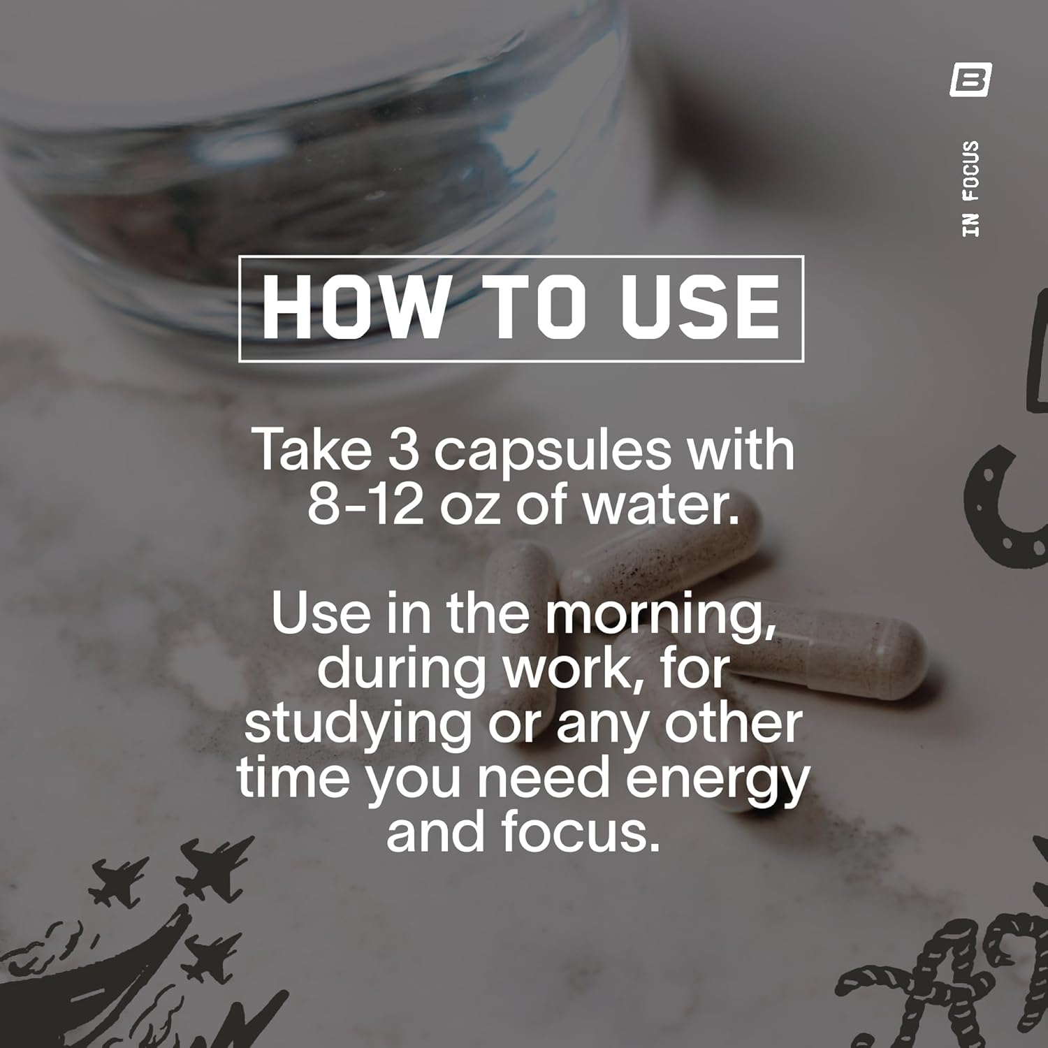 Bpn In-Focus: In-Focus Is Our Cognitive Enhancer Created To Improve Your Focus And Energy Levels, When You Need It The Most. 120 Unflavored Capsules, 40 Servings. Take 3 Capsules With 8-12 Oz Of Cold Water
