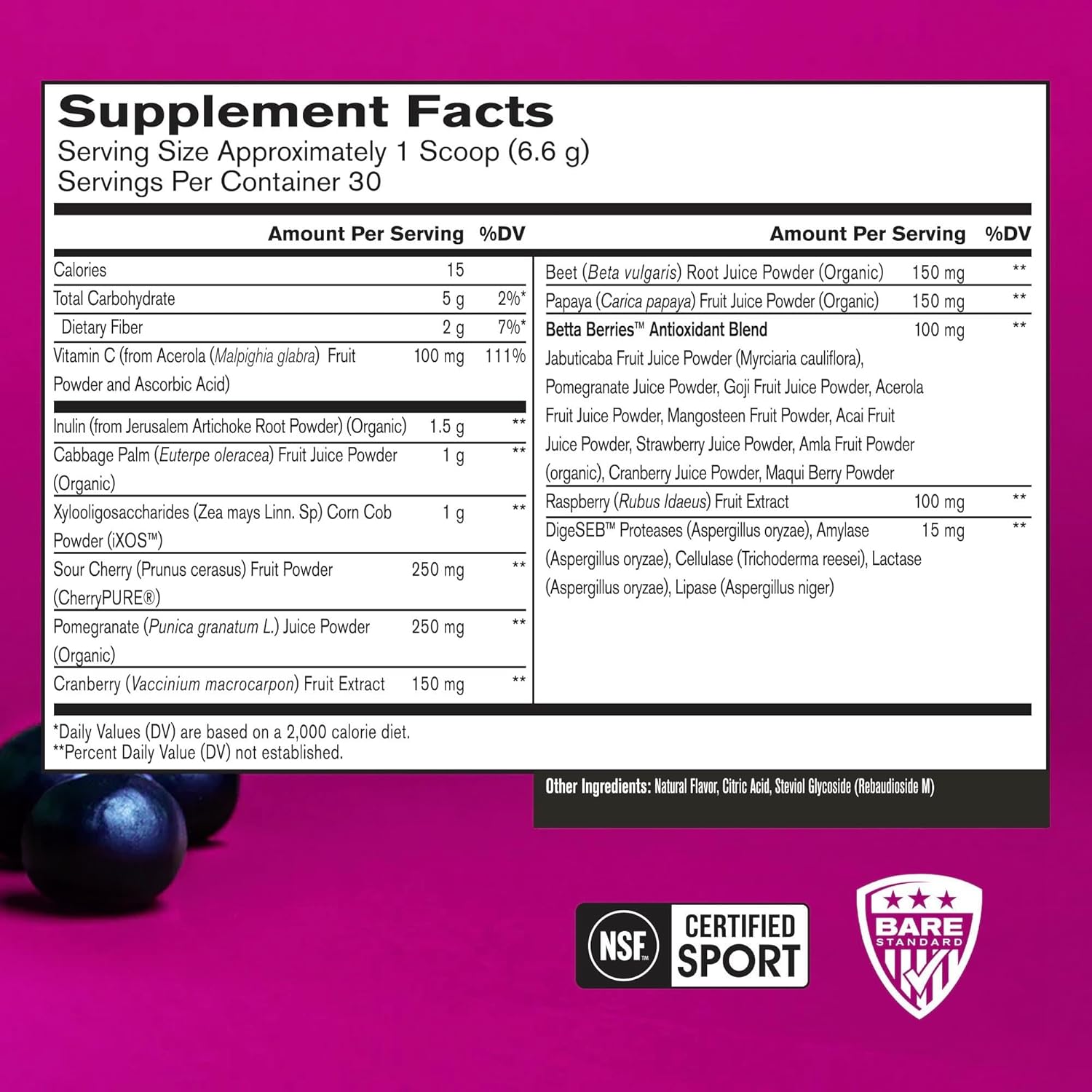 Bare Performance Nutrition, Bpn Strong Reds Superfood Powder, Digestive Enzymes, Antioxidants, Improved Natural Energy, 30 Servings, Acai