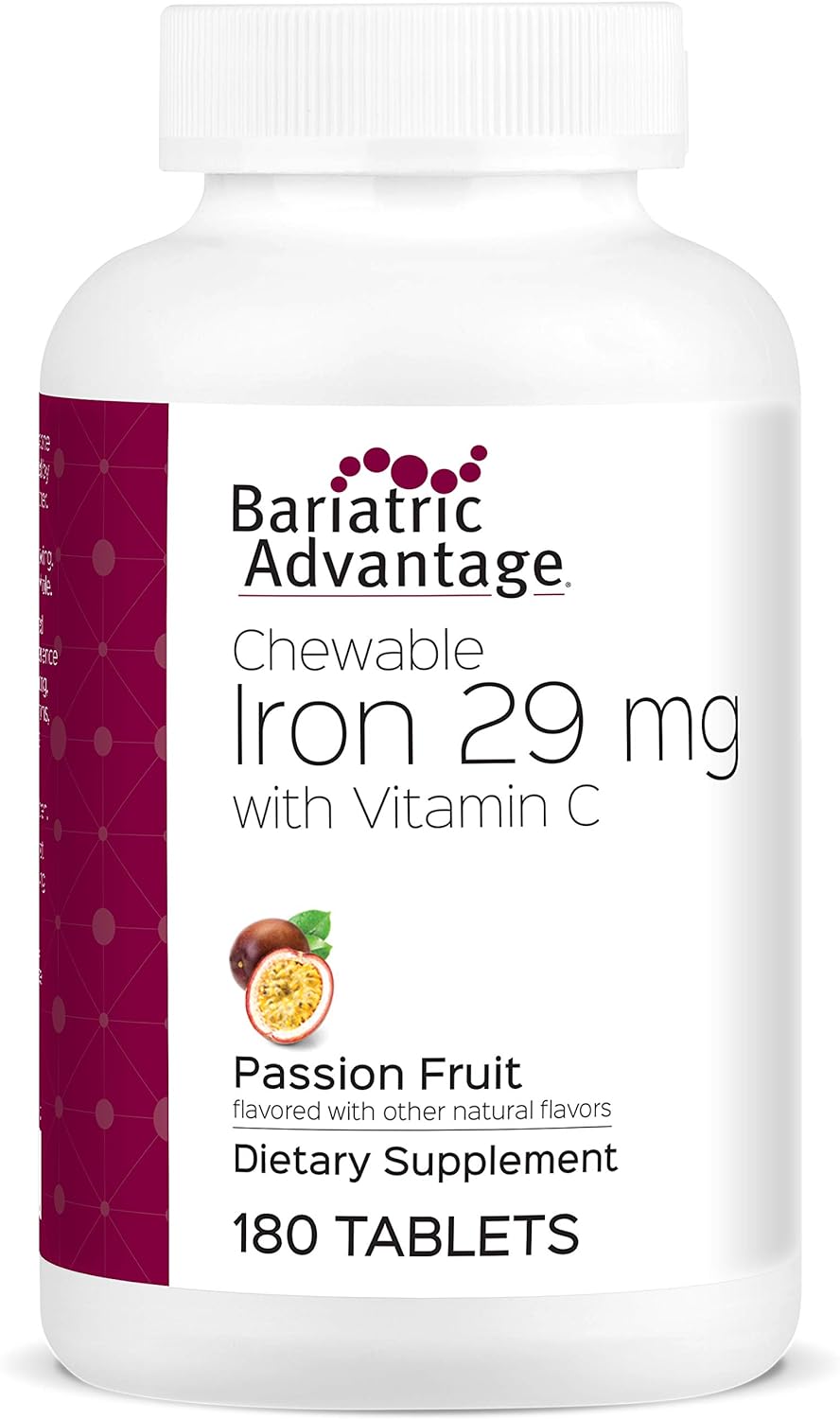 Bariatric Advantage Chewable Iron 29 Mg - For Bariatric Surgery Patients - Iron With Vitamin C - No Iron Taste - Ferrous Fumarate & Carbonyl Iron Supplement - Passion Fruit - 180 Count