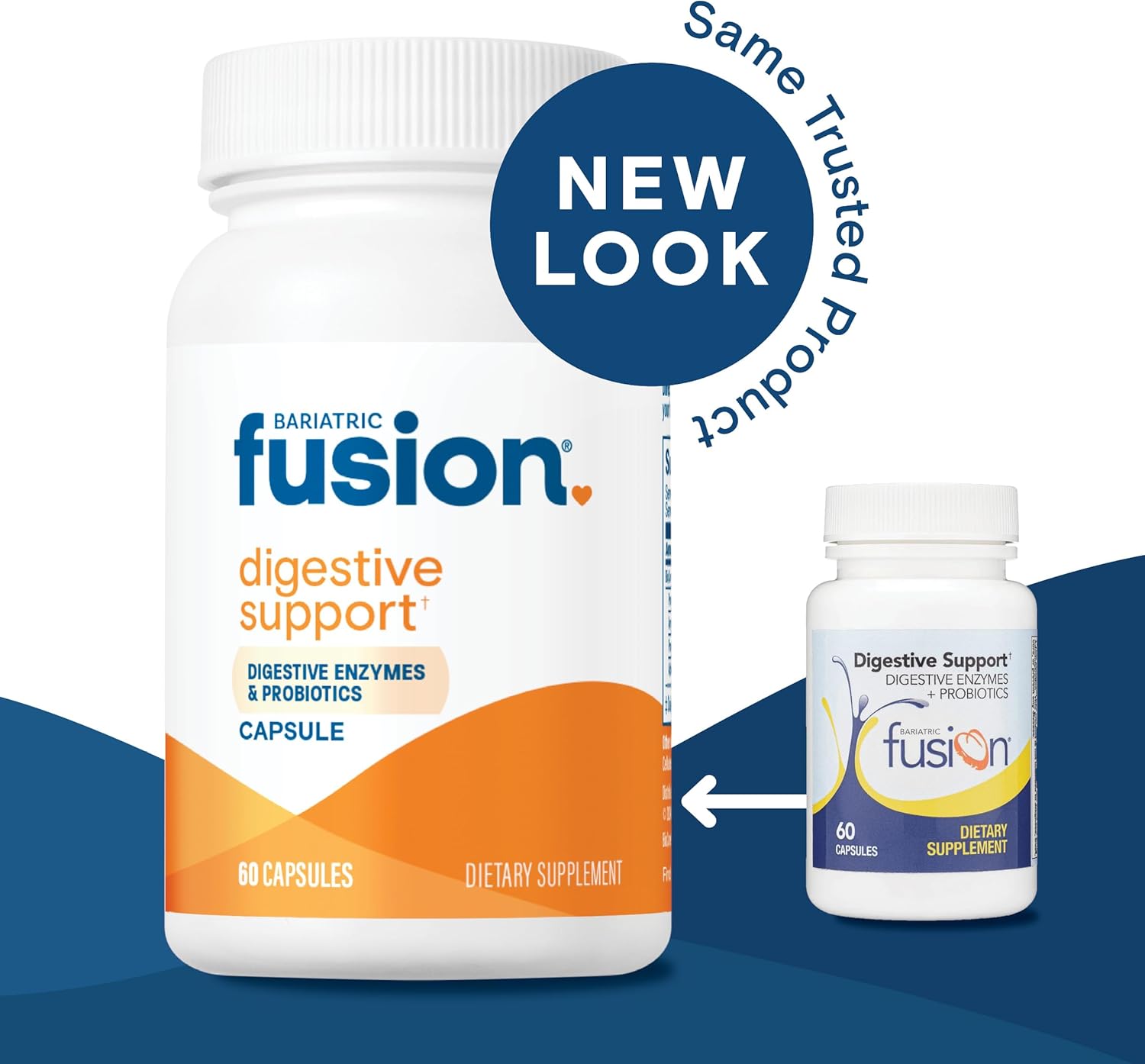 About this item Bariatric Formulation: A premium Daily digestive enzymes + probiotic supplement for Bariatric Patients. This premium unique formulation may support gut health, nutrient absorption, bowel regularity, immune function, and healthy cholesterol levels.* Formulated to relieve occasional gas, bloating, indigestion, and irregularity faster than most stand-alone digestive enzyme products.* Digestion support specifically formulated for those who have undergone metabolic and bariatric surgery.* Affordable and Easy: Only 1 capsule before meals may support optimal digestion and absorption of nutrients from foods.* IDeal Digestive Enzymes for Women and Men. Helps your body break down fats, proteins, and carbohydrates.* Each bottle contains 60 easy to swallow capsules. This unique digestive enzyme supplement is sugar-free, gluten-free, and non-GMO. It is free from artificial colors and flavors, tree nut, peanut, dairy, and soy. Advanced Gut Health: Digestive Support features a blend of 11 digestive enzymes that collectively help to break down proteins, fats, and carbohydrates, including difficult-to-digest starches. These enzymes include Protease, Lactase, Lipase, Amylase and more. This formula includes Bacillus subtilis. This Vegan friendly formula is free from dairy, soy, egg, fish, shellfish, peanut, and tree nut. It also contains no artificial colors, flavors, dyes or colors. Formulated by Bariatric Surgical Team: Designed for maximum absorption by a bariatric surgical team to meet the needs of their bariatric patients. Over 15 years have experience has helped us develop the best bariatric products on the market. Designed by a bariatric surgical team specifically for gastric bypass, sleeve gastrectomy, duodenal switch, and lap band patients for maximum absorption.* Brand You Trust: Bariatric Fusion was founded by a Bariatric Practitioner over 15 Years ago. Our goal has been to create a simple, great tasting, and affordable daily vitamin regimen for bariatric patients post surgery. We are committed to providing the highest quality bariatric vitamins. Our products are Made in the USA from globally-sourced ingredients in GMP certified facilities. › See more product details,Bariatric Formulation: A premium Daily digestive enzymes + probiotic supplement for Bariatric Patients. This premium unique formulation may support gut health, nutrient absorption, bowel regularity, immune function, and healthy cholesterol levels.* Formulated to relieve occasional gas, bloating, indigestion, and irregularity faster than most stand-alone digestive enzyme products.* Digestion support specifically formulated for those who have undergone metabolic and bariatric surgery,Affordable and Easy: Only 1 capsule before meals may support optimal digestion and absorption of nutrients from foods.* IDeal Digestive Enzymes for Women and Men. Helps your body break down fats, proteins, and carbohydrates.* Each bottle contains 60 easy to swallow capsules. This unique digestive enzyme supplement is sugar-free, gluten-free, and non-GMO. It is free from artificial colors and flavors, tree nut, peanut, dairy, and soy,Advanced Gut Health: Digestive Support features a blend of 11 digestive enzymes that collectively help to break down proteins, fats, and carbohydrates, including difficult-to-digest starches. These enzymes include Protease, Lactase, Lipase, Amylase and more. This formula includes Bacillus subtilis. This Vegan friendly formula is free from dairy, soy, egg, fish, shellfish, peanut, and tree nut. It also contains no artificial colors, flavors, dyes or colors,Formulated by Bariatric Surgical Team: Designed for maximum absorption by a bariatric surgical team to meet the needs of their bariatric patients. Over 15 years have experience has helped us develop the best bariatric products on the market. Designed by a bariatric surgical team specifically for gastric bypass, sleeve gastrectomy, duodenal switch, and lap band patients for maximum absorption,Brand You Trust: Bariatric Fusion was founded by a Bariatric Practitioner over 15 Years ago. Our goal has been to create a simple, great tasting, and affordable daily vitamin regimen for bariatric patients post surgery. We are committed to providing the highest quality bariatric vitamins. Our products are Made in the USA from globally-sourced ingredients in GMP certified facilities