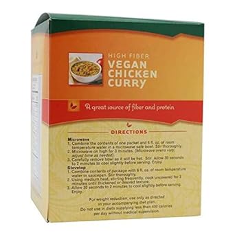 120 calories, 15 grams of protein, 5 grams of dietary fiber, 15% of the daily value for ironFree from gluten and sucraloseMade with real turmeric and vegetablesHigh-quality, plant-based proteinSuitable for bariatric surgery, low-carb, and other weight loss dietsEnjoy a bowl of Chicken Curry with warm spices and satisfying coconut curry seasoning, without the fat, calories, or guilt you might find at a restaurant. This Thai-inspired dish is completely vegan and has real vegetables, coconut oil, and turmeric, and other spices. No weight loss diet should deprive you of warm, comforting foods, and Bariatricpal Vegan Chicken Curry Protein Entree puts them within reach. It has only 120 calories and 13 grams of carbohydrates while delivering 15 grams of protein and 5 grams of fiber. Your guilt-free meal can be ready in minutes. You can have your delicious curry even faster than if you went to a restaurant while saving hundreds of calories. Each box has 7 packets. Microwave: 1. Combine the contents of one packet and 6 fl. oz. of room temperature water in a microwave-safe bowl. Stir thoroughly. 2. Microwave on high for 3 minutes. (Microwave ovens vary; adjust time as needed). 3. Carefully remove bowl as it will be hot. Stir. Allow 30 seconds to 2 minutes to cool slightly before serving. Enjoy. Stovetop: 1. Combine contents of package with 6 fl. oz. of room temperature water in a saucepan. Stir thoroughly. 2. Using medium heat, stirring frequently, cook uncovered for 3 minutes until thickened or desired texture. 3. Allow 30 seconds to 2 minutes to cool slightly before serving. Enjoy