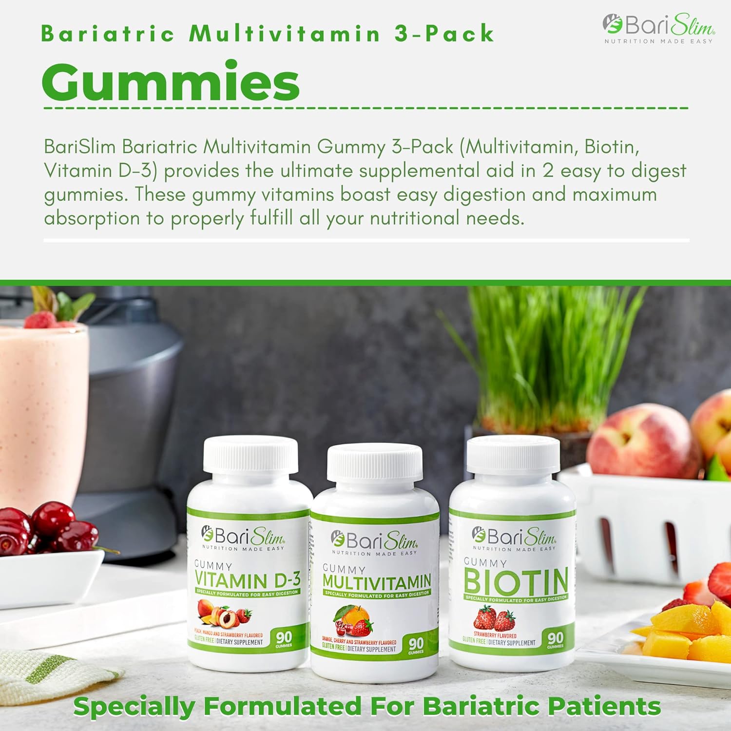 BariSlim Bariatric Multivitamin Gummies – Multivitamin, Biotin, and D3 - Specially Formulated Gummy Vitamins for Patients After Weight Loss Surgery - Easy Digestion | 3 Pack (90 Fruit Chews)