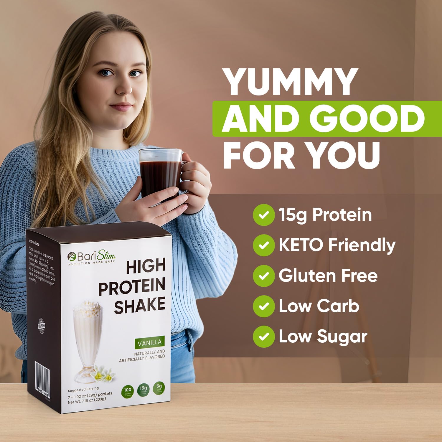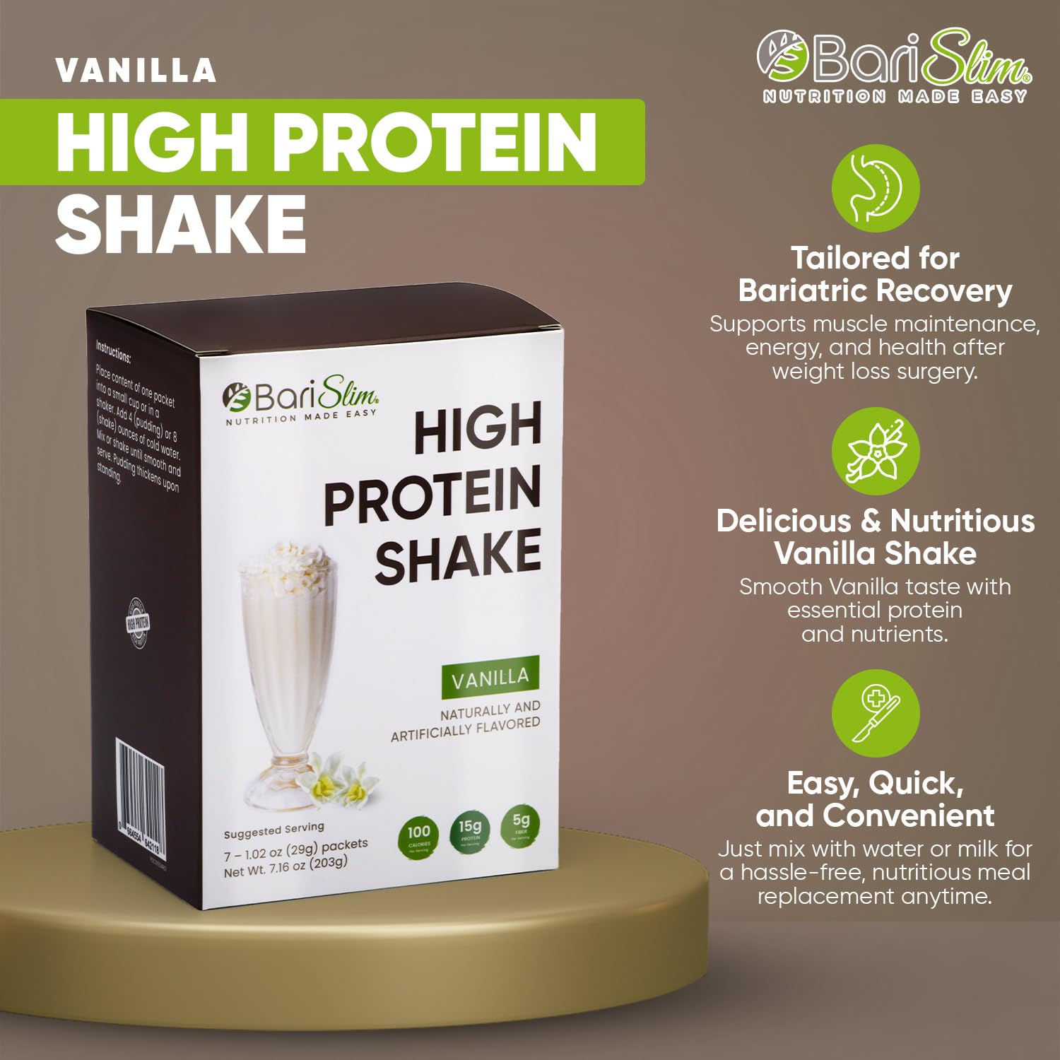 About this item ??Post-Bariatric Support?: Our high protein shake is specifically formulated to meet the unique nutritional needs of bariatric patients and those recovering from weight loss surgery. Packed with premium protein and essential nutrients, this protein shake helps support muscle maintenance, energy levels, and overall health during the recovery process. ??Delightful Strawberry Banana Flavor?: This low sugar protein shake makes getting your daily protein feel like a treat with its delicious flavour. Treat yourself to the smooth, rich taste of strawberry banana with every sip. This strawberry banana protein shake is a great choice for anyone wanting a tasty and healthy shake. Packed with protein and essential nutrients, it’s the perfect way to fuel your day. ??Nutrient-Packed Shake?: This low carb protein shake is a complete meal replacement, offering 15 grams of protein and only 100 calories per serving. Packed with 25 essential vitamins and minerals, it provides balanced nutrition to help you feel full longer. Ideal for weight management and supporting a healthy diet after surgery, this protein shake makes it easy to stay on track without sacrificing taste or convenience. ??Simple & Quick Preparation?: This meal replacement protein shake is quick and easy to make, perfect for busy days. Just mix the powder with water or milk for a fast, tasty meal anytime. With its simple preparation and great flavor, this low carb meal replacement shake makes it easy to stick to a healthy diet without any hassle. It is a convenient choice for those who want a healthy meal without the time or effort. ??BariSlim's Reliable Quality?: BariSlim is committed to providing high-quality, affordable products designed to prevent malnutrition and simplify daily routines. Founded on core values of great taste, ease of use, and cost-effectiveness. Our mission is to support bariatric patients by offering nutritional solutions that reduce the complexity and expense of monthly programs. Do not miss the opportunity simply click “ADD TO CART” to order yours today! › See more product details,??Post-Bariatric Support?: Our high protein shake is specifically formulated to meet the unique nutritional needs of bariatric patients and those recovering from weight loss surgery. Packed with premium protein and essential nutrients, this protein shake helps support muscle maintenance, energy levels, and overall health during the recovery process,??Delightful Strawberry Banana Flavor?: This low sugar protein shake makes getting your daily protein feel like a treat with its delicious flavour. Treat yourself to the smooth, rich taste of strawberry banana with every sip. This strawberry banana protein shake is a great choice for anyone wanting a tasty and healthy shake. Packed with protein and essential nutrients, it’s the perfect way to fuel your day,??Nutrient-Packed Shake?: This low carb protein shake is a complete meal replacement, offering 15 grams of protein and only 100 calories per serving. Packed with 25 essential vitamins and minerals, it provides balanced nutrition to help you feel full longer. Ideal for weight management and supporting a healthy diet after surgery, this protein shake makes it easy to stay on track without sacrificing taste or convenience,??Simple & Quick Preparation?: This meal replacement protein shake is quick and easy to make, perfect for busy days. Just mix the powder with water or milk for a fast, tasty meal anytime. With its simple preparation and great flavor, this low carb meal replacement shake makes it easy to stick to a healthy diet without any hassle. It is a convenient choice for those who want a healthy meal without the time or effort,??BariSlim's Reliable Quality?: BariSlim is committed to providing high-quality, affordable products designed to prevent malnutrition and simplify daily routines. Founded on core values of great taste, ease of use, and cost-effectiveness. Our mission is to support bariatric patients by offering nutritional solutions that reduce the complexity and expense of monthly programs. Do not miss the opportunity simply click “ADD TO CART” to order yours today!