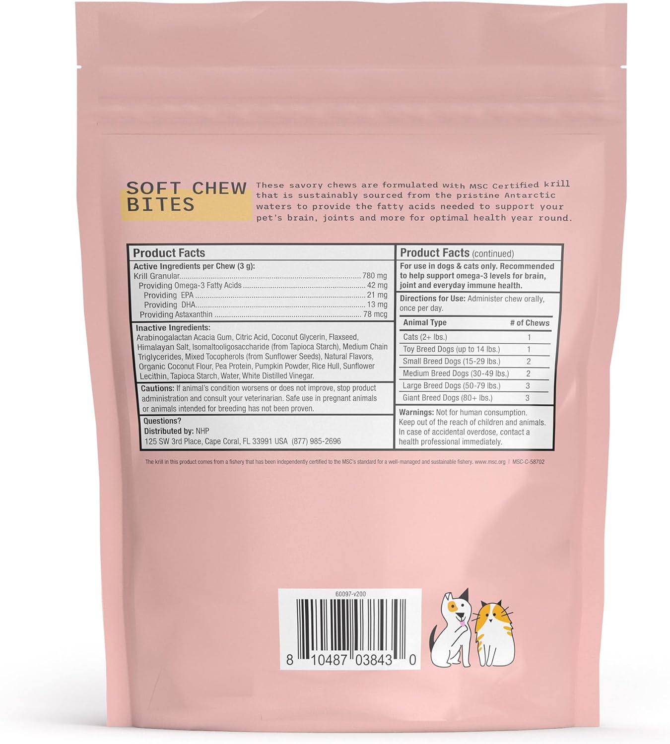 Bark & Whiskers Antarctic Krill Bites, 6.34 Oz. (180 G), 60 Chews, Epa & Dha, Supports Brain & Joint Health, Veterinarian Formulated, Non-Gmo, Msc Certified, Dr. Mercola