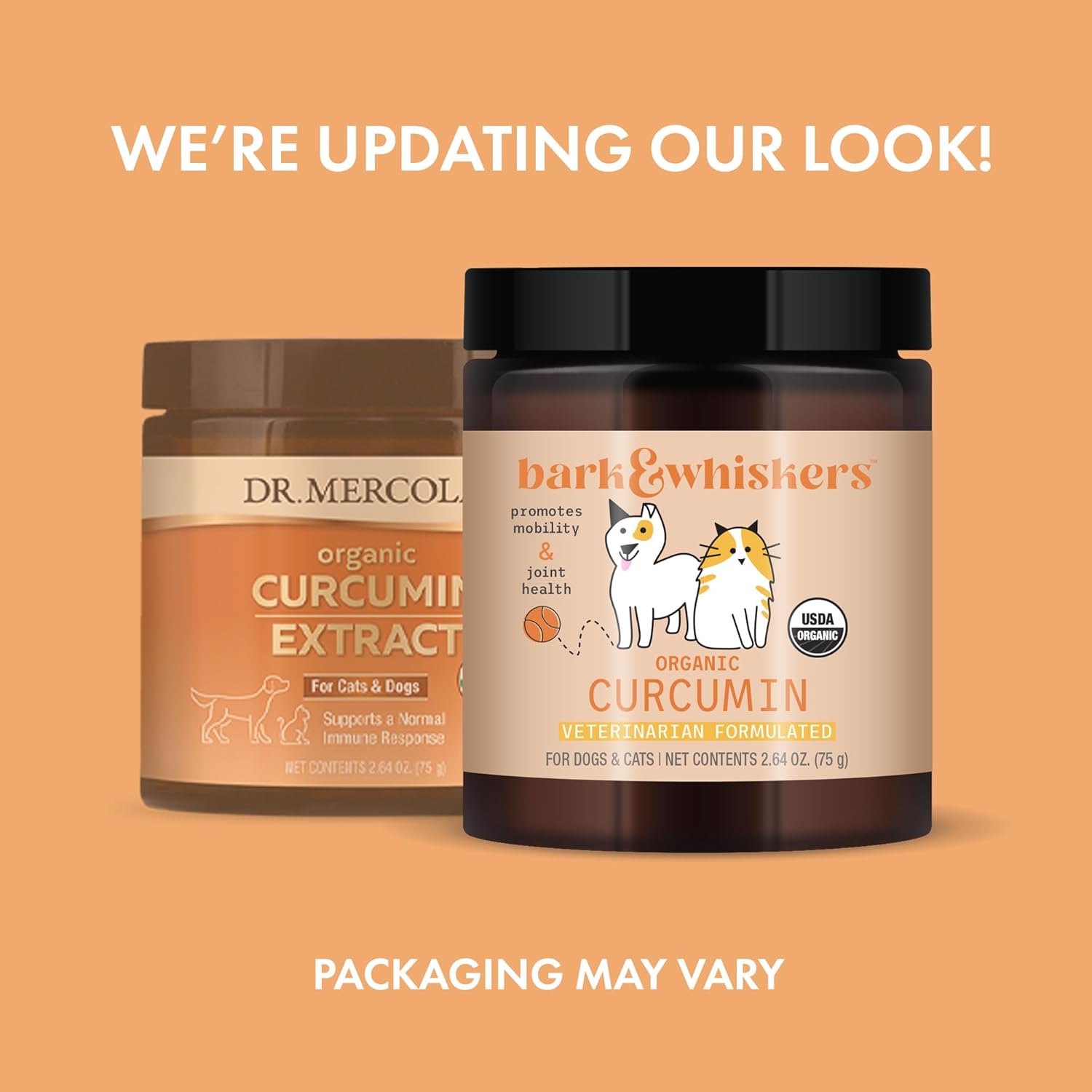Bark & Whiskers Organic Curcumin, 2.64 Oz. (75 G), 300 Scoops, Promotes Mobility & Joint Health, Veterinarian Formulated, Non-Gmo, Certified Usda Organic, Dr. Mercola