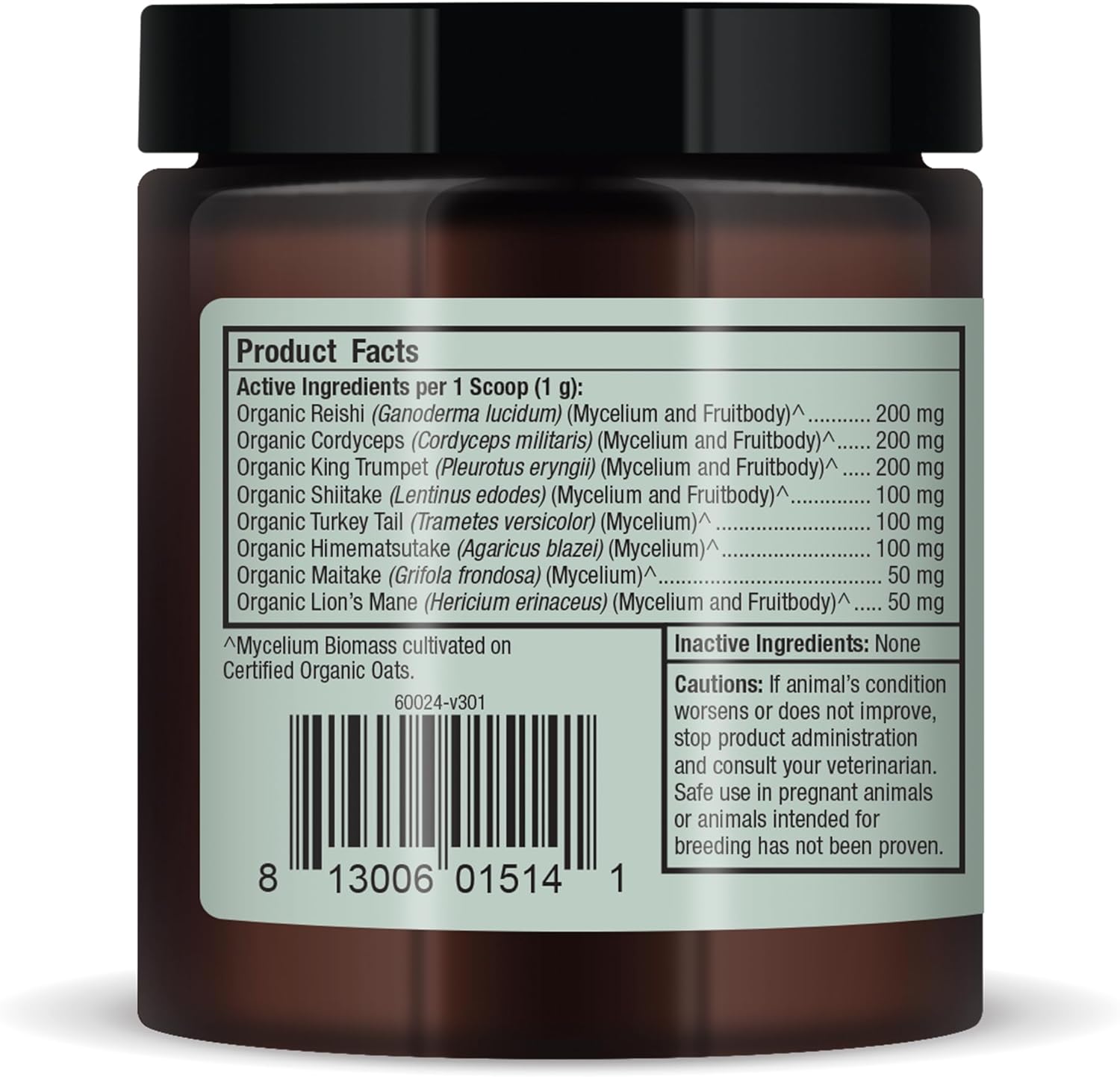 4 >Our Organic Fermented Mushroom Blend comes in a convenient, easy-to-use powder. Just sprinkle the recommended number of scoops over wet or dry food once per day
