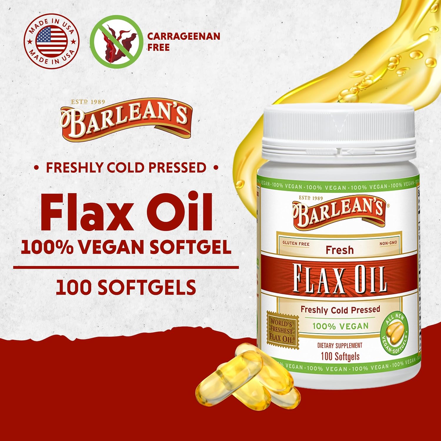 Barlean'S Omega 3 6 9 Flaxseed Oil Supplements, Cold-Pressed Flax Seed Supplement Softgels With 1650 Mg Ala Fatty Acids, 100 Count