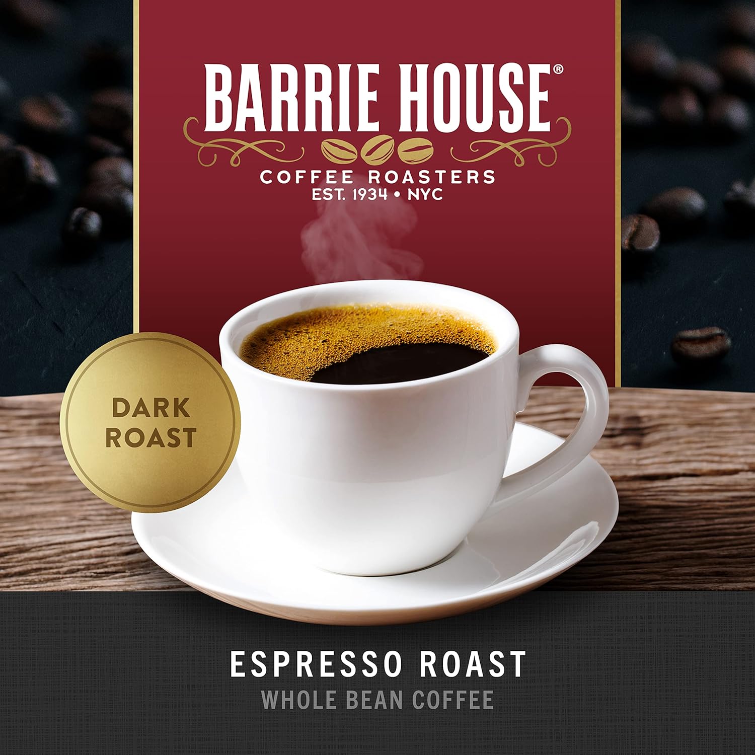 Barrie House Espresso Roast Whole Bean Coffee, 2 Lb Bag | Fair Trade Organic Certified | Dark Roast | Sweet And Robust Flavor| 100% Arabica Coffee Beans