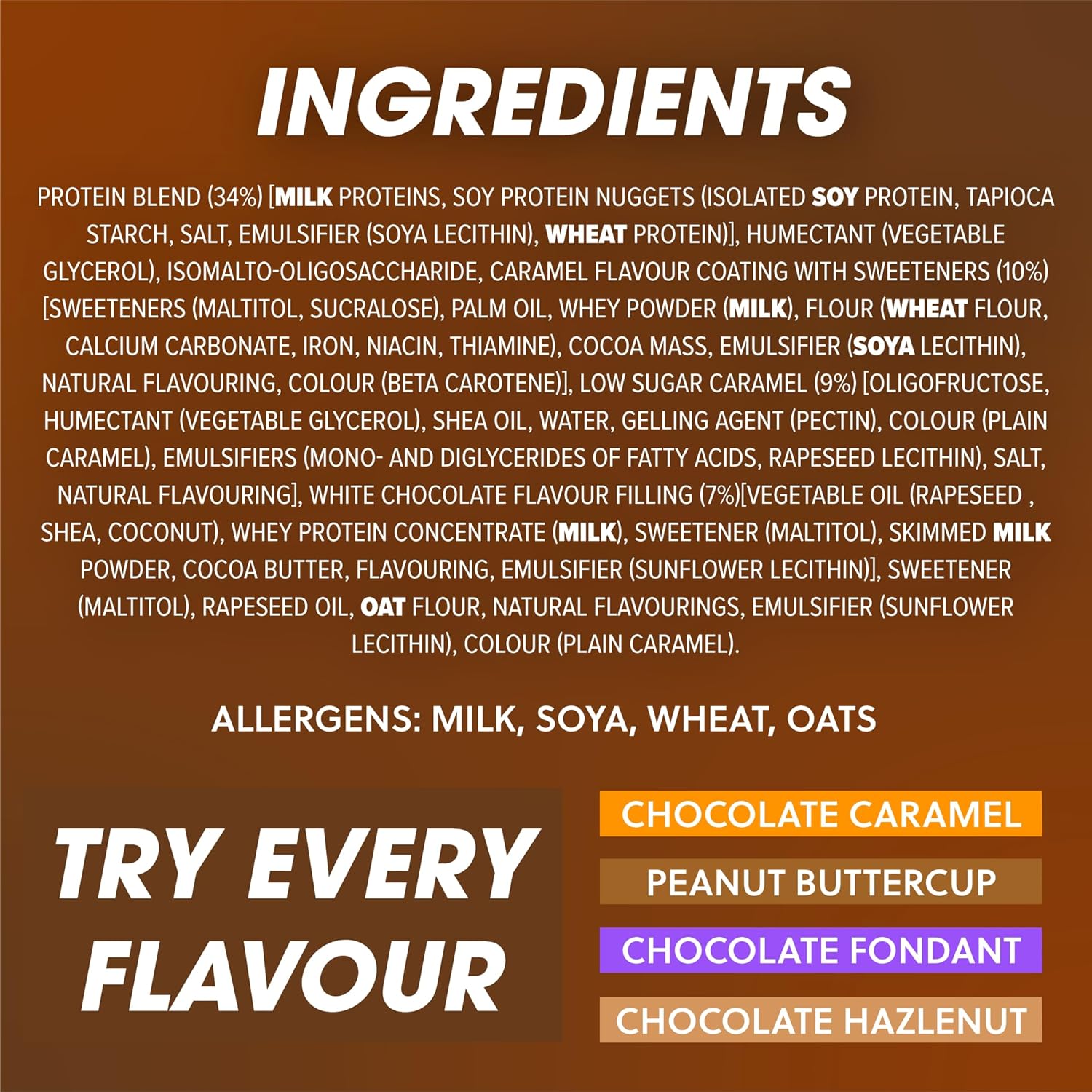 Battle Bites Dynabar High Protein Bars 12 X 60G - Chocolate Caramel Flavour - Low In Sugar, Free From Preservatives, Non-Gmo, Suitable For Vegetarians - 18G Protein + 243 Calories Per Bar - Made In Uk