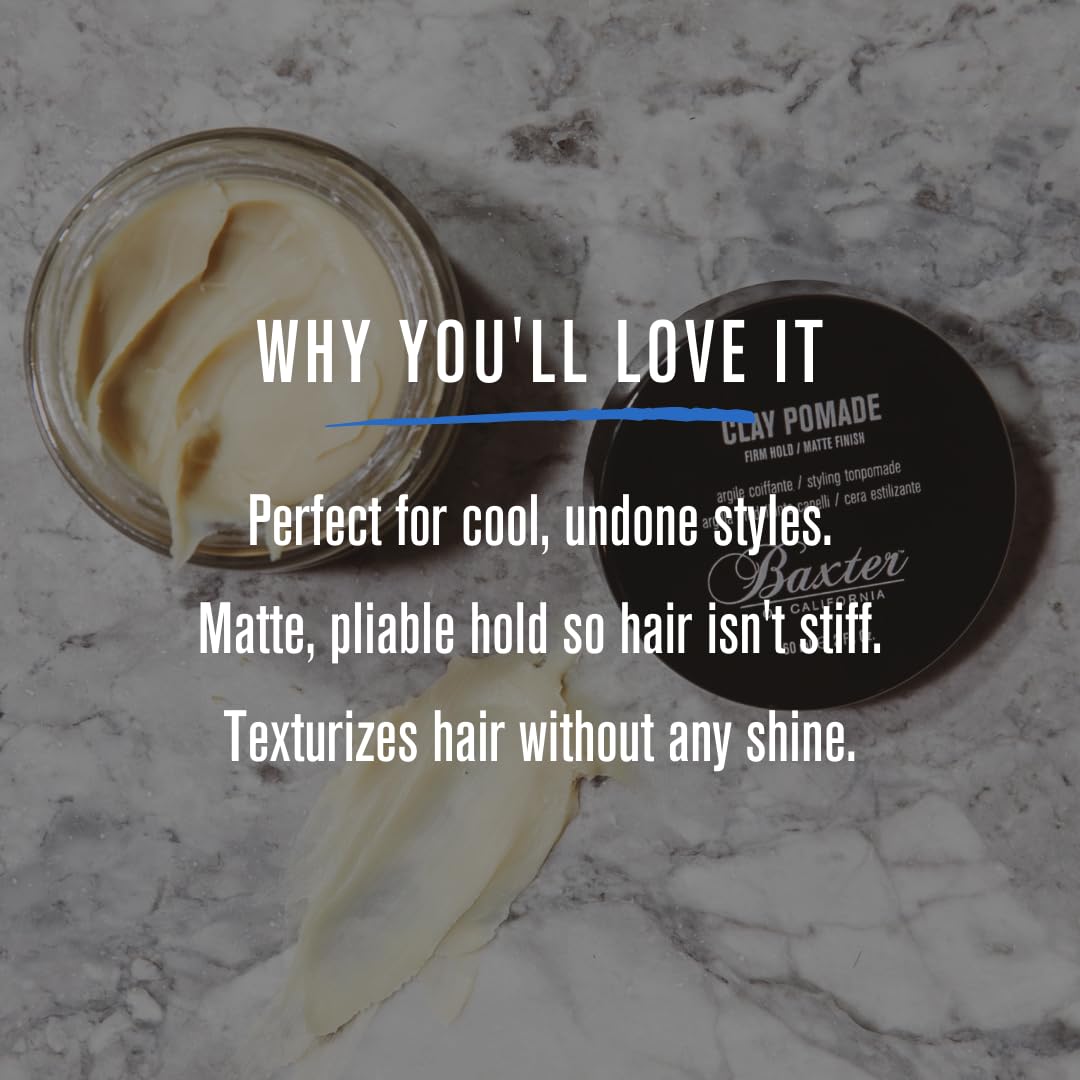 Baxter of California Clay Pomade Firm Hold / Matte Finish Hair Pomade for Men and Women, Perfect for Texturizing Straight or Wavy Hair - 2 Ounces