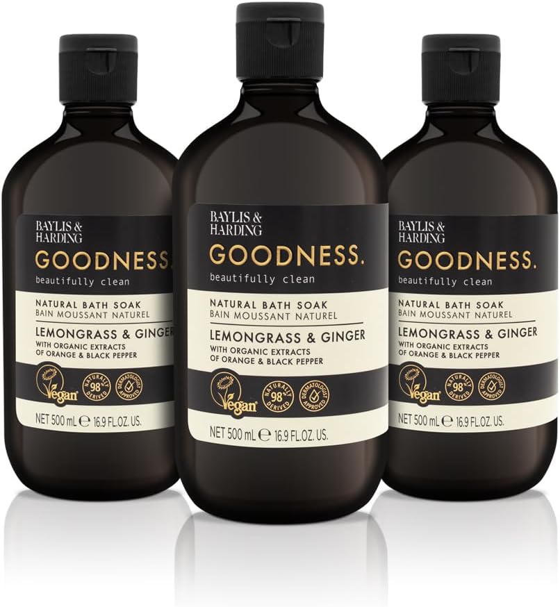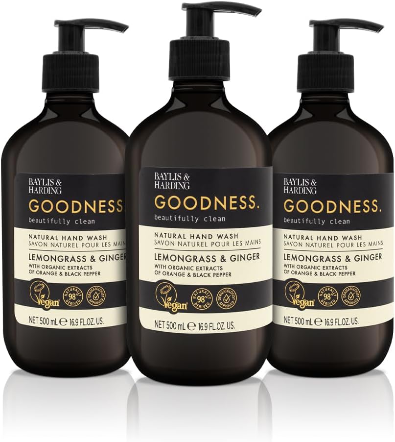 Baylis & Harding Goodness Lemongrass & Ginger Toiletries Bundle: 3 X 500 Ml Hand Wash & 3 X 500 Ml Bath Soak (6 Bottles) - Vegan Friendly