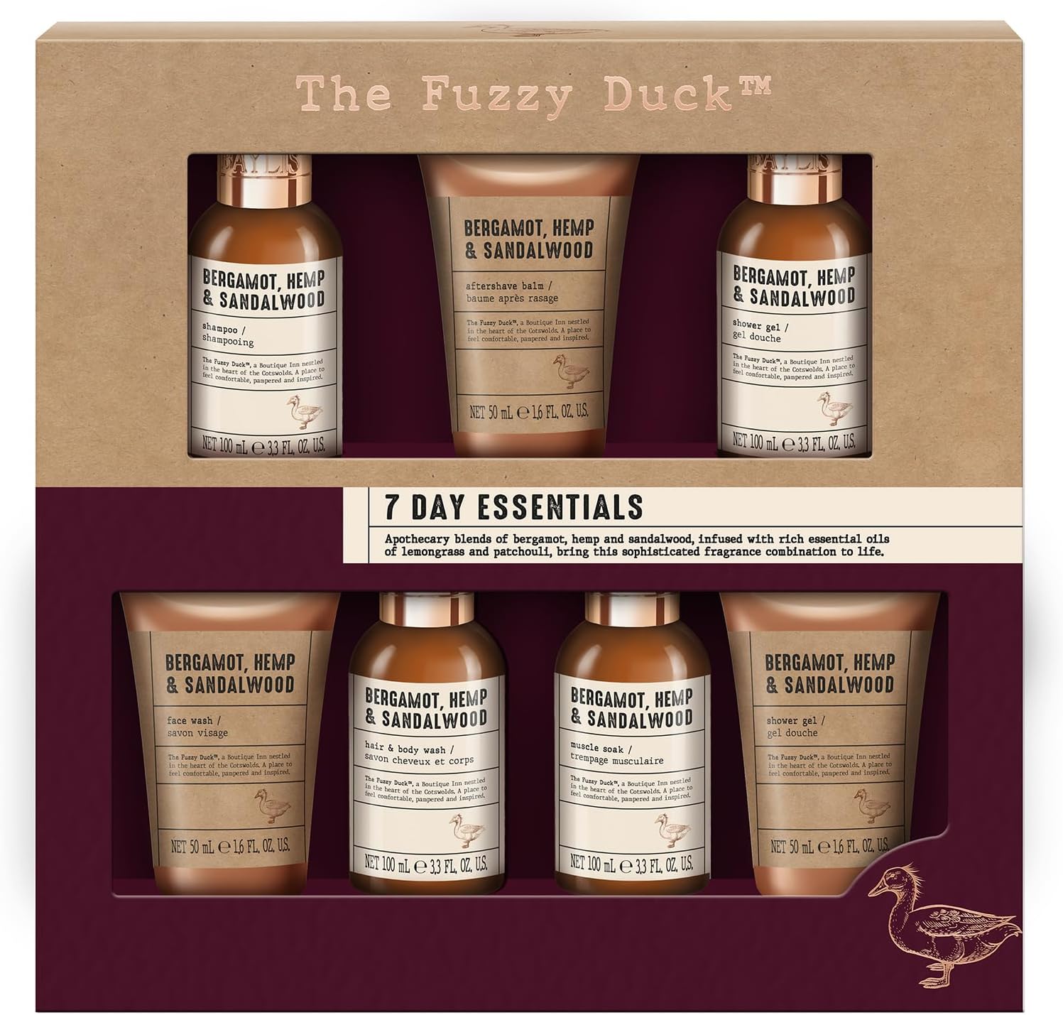 Baylis & Harding The Fuzzy Duck Bergamot, Hemp & Sandalwood Men'S 7 Day Essentials Gift Set - Vegan Friendly