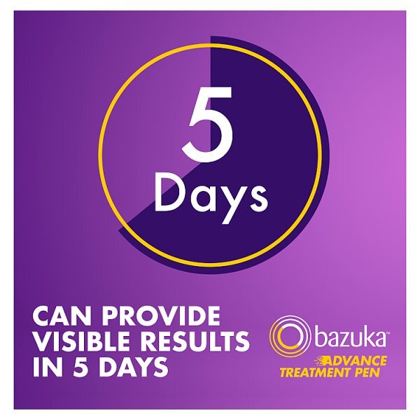 Product Information:Bazuka Advance Treatment Pen is indicated for the treatment of stubborn warts and verrucas on the hands and feet. It is suitable for use by adults and children from 8 years old and can provide visible results in 5 days. It has a precision tip for easy and targeted application to protect healthy skin around the wart or verruca,Features:Product Details Bazuka Advance Treatment Pen Is Indicated For The Treatment Of Stubborn Warts And Verrucas On The Hands And Feet. It Is Suitable For Use By Adults And Children From 8 Years Old And Can Provide Visible Results In 5 Days. It Has A Precision Tip For Easy And Targeted Application To Protect Healthy Skin Around The Wart Or Verruca. Warts And Verrucas Are Small Excessive Growths In The Skin Caused By The Human Papilloma Virus (Hpv). Warts Often Occur On The Fingers, Or On The Back Of The Hands. You Can Recognise The Common Wart By The Rough âCauliflower-Likeâ Appearance Of The Surface. Verrucas Occur Most Often On The Sole Of The Foot. They Can Be Painful, And Often Look Like A Small White Ring Of Skin With Black Dots In The Centre. The Virus Is Very Infectious. This Means That Warts And Verrucas Can Grow And Spread, Particularly If Left Untreated. The Virus Can Also Be Transferred To Other Parts Of The Body Or From One Person To Another. How Bazuka Advance Treatment Pen Works â Bazuka Advance Treatment Pen Is Specifically Designed For Topical Administration Directly Onto Warts And Verrucas. Following Application, The Treatment Is Immediately Absorbed Into The Wart Or Verruca. The Pen Contains Formic Acid, Which Dries Out The Infected Skin, Thereby Treating The Wart Or Verruca,Warning or Restrictions:Hazards and Cautions Do not use Bazuka Advance Treatment Pen if you are known to be allergic (hypersensitive) to any of the ingredients listed, or bee/ant stings. - Do not use on children under the age of 8 years. - Do not use the treatment pen if you have diabetes or suffer from poor blood circulation (peripheral vascular disease) to your hands or feet. - Do not use the treatment pen anywhere near your face, armpits, breasts, bottom or genital (sex) area. - Do not use on âwartsâ with hair growing from them, facial warts, birthmarks, moles, pigmented skin or any other spots. If you are unsure whether you have a wart or verruca that is suitable for treatment with Bazuka Advance Treatment Pen, ask your doctor, pharmacist or nurse before starting treatment. - Do not apply Bazuka Advance Treatment Pen to sore or bleeding warts, irritated, inflamed, blistered or damaged skin. Wait until the skin has recovered. - Do not use in combination with other wart removal therapies. - Try to avoid unnecessary exposure to sunlight as this may cause temporary discolouration (either darkening or lightening) of the treated skin. - Do not cover the treated area with a plaster. Use of a plaster after treatment may cause skin damage. Take special care when using this product, it contains a corrosive agent with a strong smell. Do not inhale and apply the treatment in a well-ventilated space. Apply the treatment carefully, to the wart or verruca only. You only need to apply a small amount of the treatment: - Take care not to apply the treatment to surrounding healthy skin, especially on young childrenâs delicate skin, because when applied incorrectly or excessively the treatment can result in blisters, inflammation, tissue damage, scars, burns or other wounds. - When used on children, for safety reasons, it must always be applied by an adult. - When applying to difficult to reach places the solution should always be applied by another adult. - There are no specific known risks for pregnant or breast-feeding women, however, it is recommended to consult your doctor, pharmacist or nurse prior to use. - IF THE PRODUCT ACCIDENTALLY COMES INTO CONTACT WITH THE EYES OR MUCOUS MEMBRANES, RINSE IMMEDIATELY WITH PLENTY OF WATER FOR 15 MINUTES AND SEEK MEDICAL ADVICE,Product Specification:Formic acid (85%), dimethyl isosorbide, aqua, caprylic acid, origanum vulgare leaf extract,Product Uses:How to use Bazuka Advance Treatment Pen delivers a small amount of colourless formulation. Do not shake the pen because this may damage it, causing it to leak. The pen may appear dry, if in doubt, press the tip against a piece of absorbent paper to check there is moisture present. The pen tip is not designed to deliver visible liquid drops. It is important to apply the treatment initially for very short contact times. The precise number of seconds required depends on the size, age and location of the wart or verruca you are treating. It is better to apply too little treatment if in doubt. To use Bazuka Advance Treatment Pen, follow the steps outlined below every other day (on days 1, 3 and 5) followed by 2 daysâ rest. Use only on warts and verrucas, on sites for which it is recommended. Carry on using the treatment pen in this way until the wart or verruca disappears or for a maximum of 6 weeks. Do not exceed the frequency or number of recommended applications or the maximum contact time. A. It is recommended to soak the affected area in lukewarm water for at least 5 minutes to soften the skin prior to treatment. B. If the wart or verruca is covered by hard skin, gently rub the hard skin off the surface of the wart or verruca, taking care not to break the skin. Take care not to file the wart or verruca itself. C. Remove the cap of the pen by pressing down and turning counterclockwise. D. Gently stroke the wart with the tip of the treatment pen for the appropriate contact time (as per the guidance below). The treatment penetrates immediately. Make sure to treat the whole wart or verruca but take care not to touch the product onto surrounding healthy skin. E. Recap the pen firmly after application. F. Wash your hands after touching warts or verrucas. G. Store the pen in its original packaging with the pen lid downwards. On first use, be cautious as only a small amount of trea