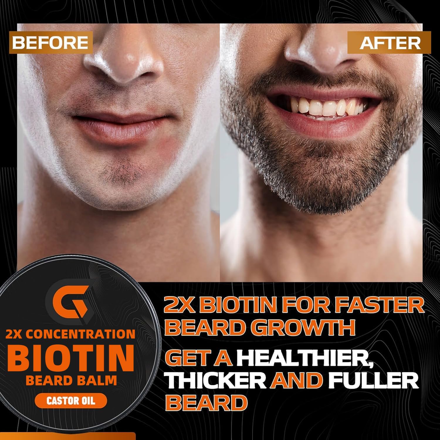 Beard Balm With 2X Concentration Biotin, Beard Growth Balm For Men - Mustache Wax & Beard Conditioner For Growth - Hydrates, Thickens Facial Hair Growth - Made With Castor Oil & Argan Oil - 2 Ounce
