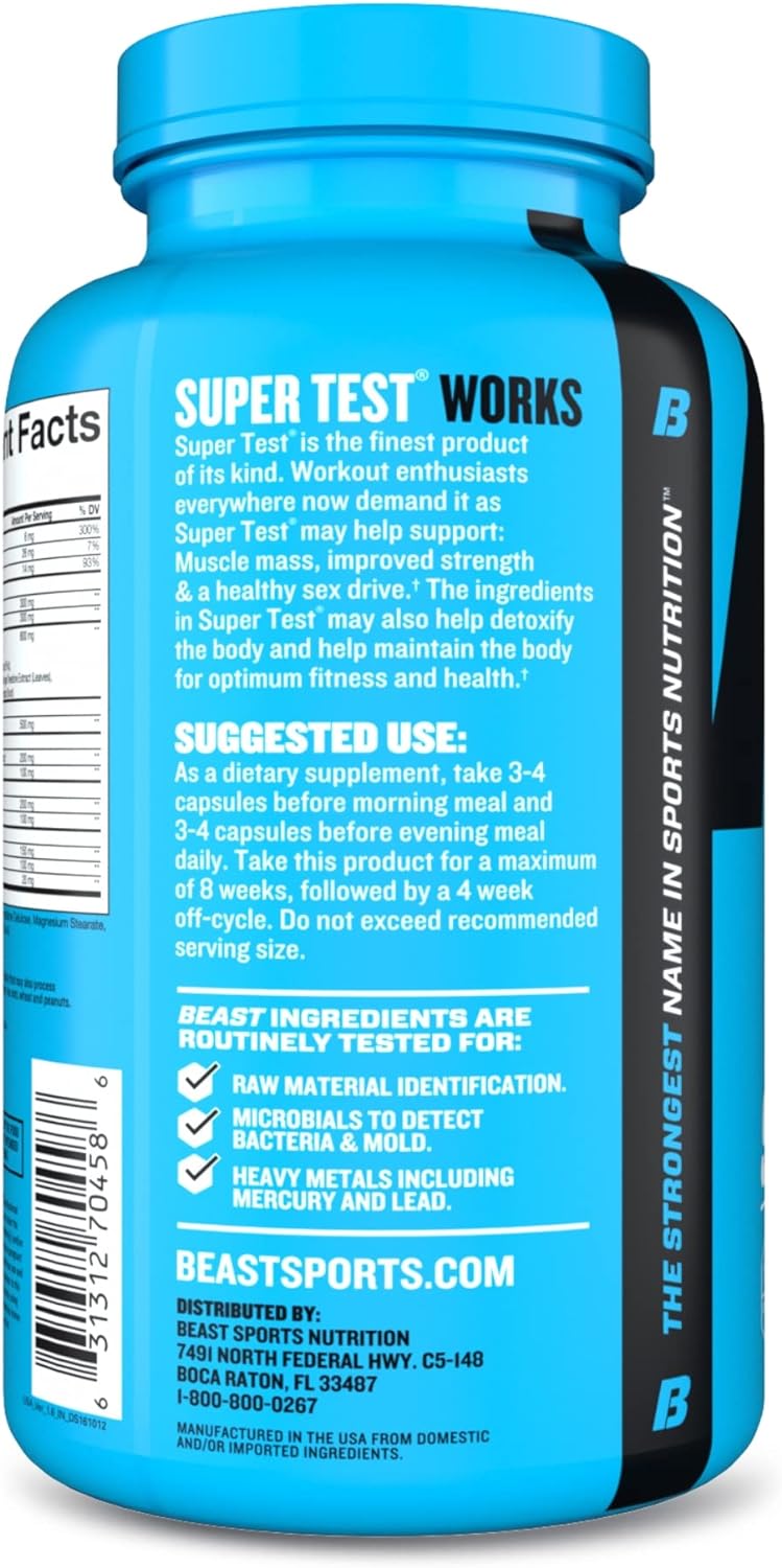 Beast Sports Nutrition Super Test - 180 Capsules - Boost Natural Testosterone Levels - Maximize Strength, Burn Body Fat, Faster Recovery & Increase Performance - 45 Servings