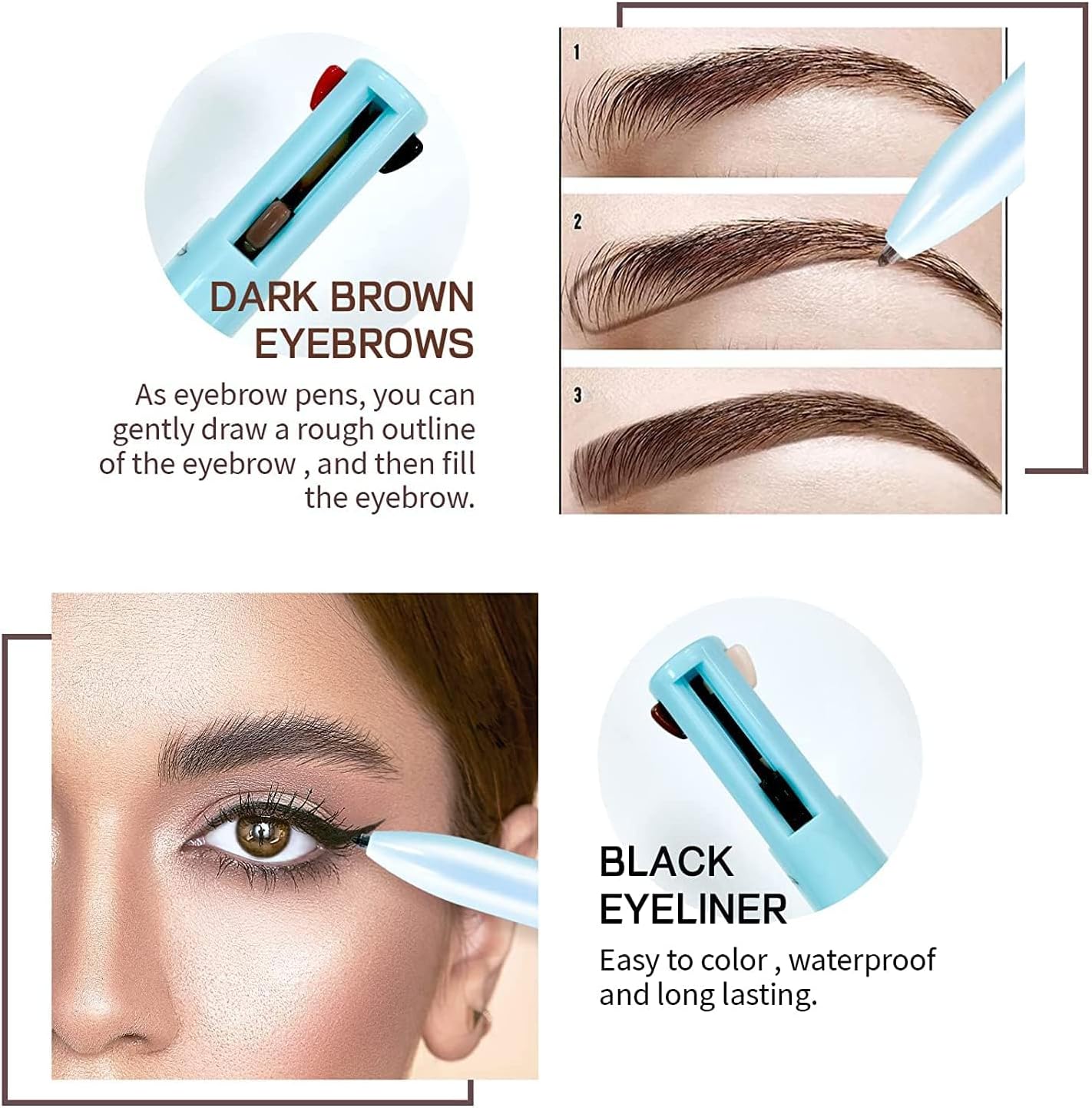 Beauty Searcher 4-In-1 Makeup Pen, Eye Liner, Brow Liner, Lip Liner, & Highlighter Pen, Waterproof All In One Makeup Pen Eye Long-Lasting 4 Color Multi-Function Makeup Beauty Pencil (Blue), 1.0 Gram