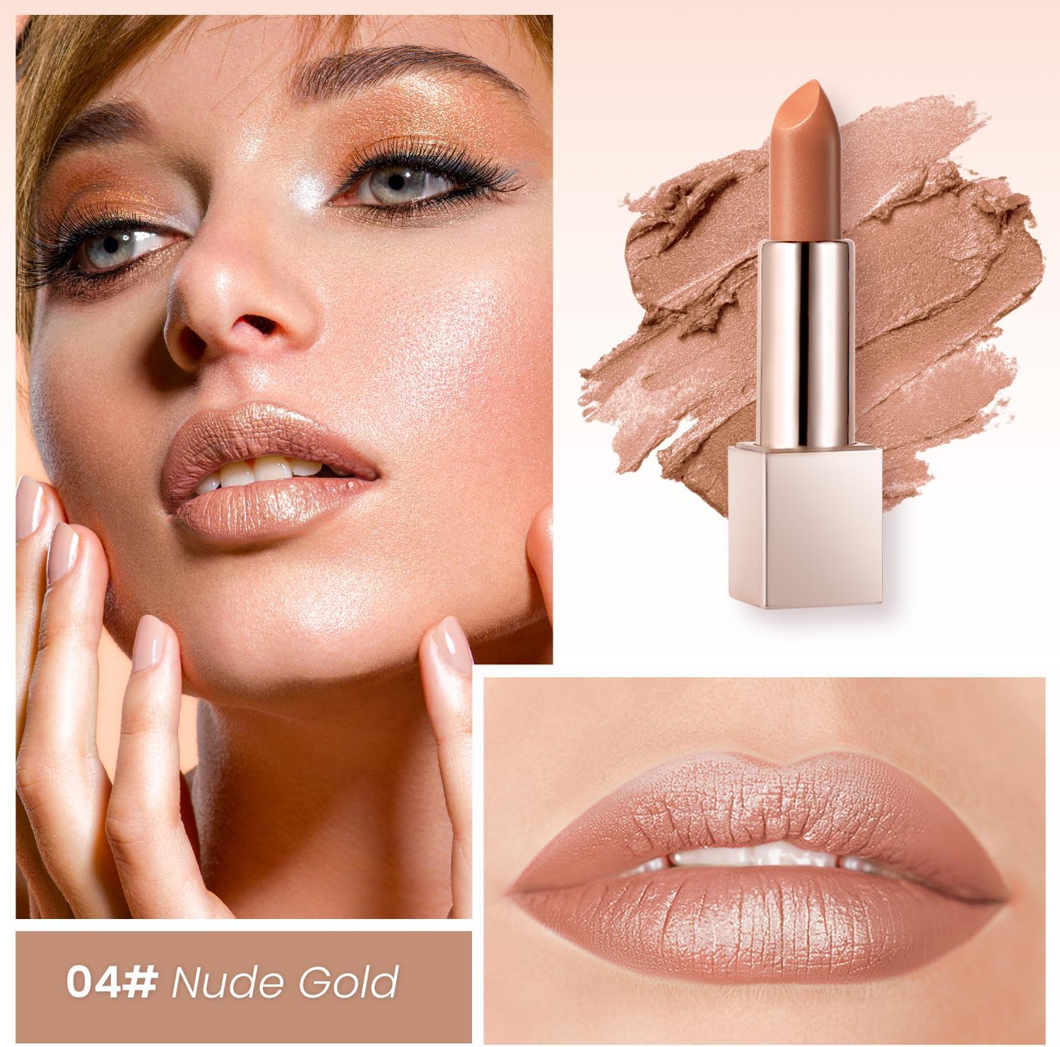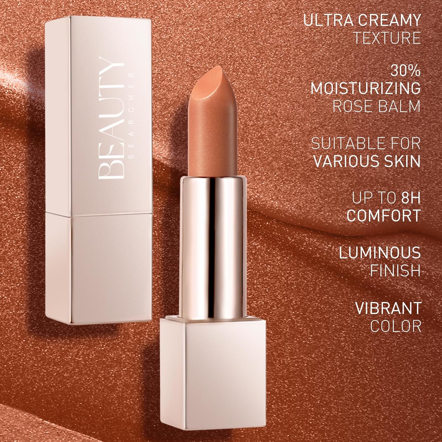 Beauty Searcher Metallic Shine Lipstick 3D Makeup For Woman Velvet Matte Lipsticks Moisturizing No-Stick Cup Lip Makeup, Long Lasting Waterproof Shine Lipstick(Nude Gold)
