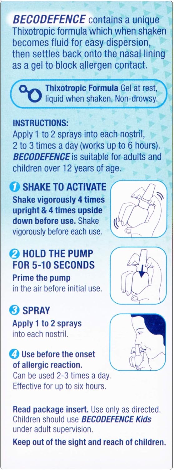 Becodefence Nasal Spray - Allergyhay Fever Defence From The First Signs Of Symptoms - Gets To Work In 3 Minutes Nondrowsy 120 Sprays, 20 Ml (Pack Of 1)