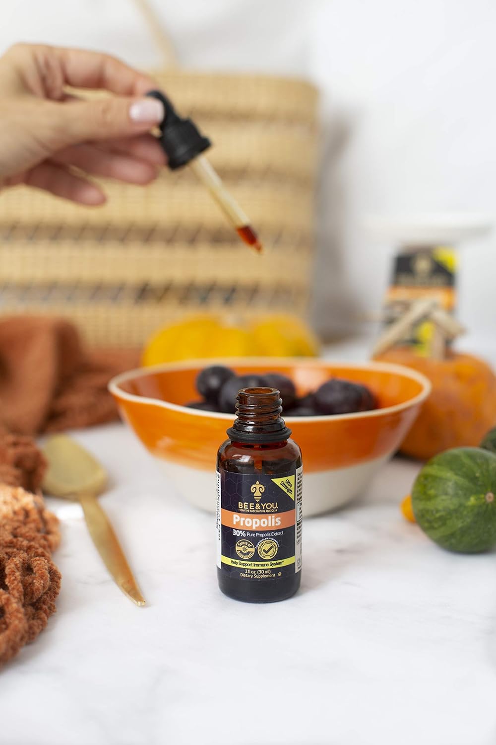 Bee And You Propolis Liquid Extract Drops, 30% Propolis, Ultra Pure, Immune Support Supplement, Sore Throat, Allergy Relief, Respiratory, Antioxidants, Keto, Paleo, Gluten-Free, 1 Fl Oz