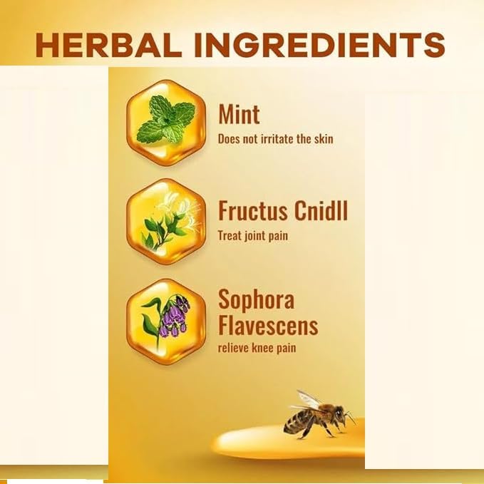 Experience natural relief with the Bee Extract Herbal Comfort Gel, a soothing massage cream formulated to support joint and body care. Enriched with bee extract and a blend of herbal ingredients, this gel provides a warming sensation that helps ease tension, reduce discomfort, and promote circulation in muscles and joints. Ideal for daily use on areas like the back, shoulders, knees, and elbows, the non-greasy formula absorbs quickly, delivering targeted comfort without residue. Whether you're managing everyday aches or seeking relaxation after physical activity, this herbal gel offers a gentle, effective solution for whole-body well-being.