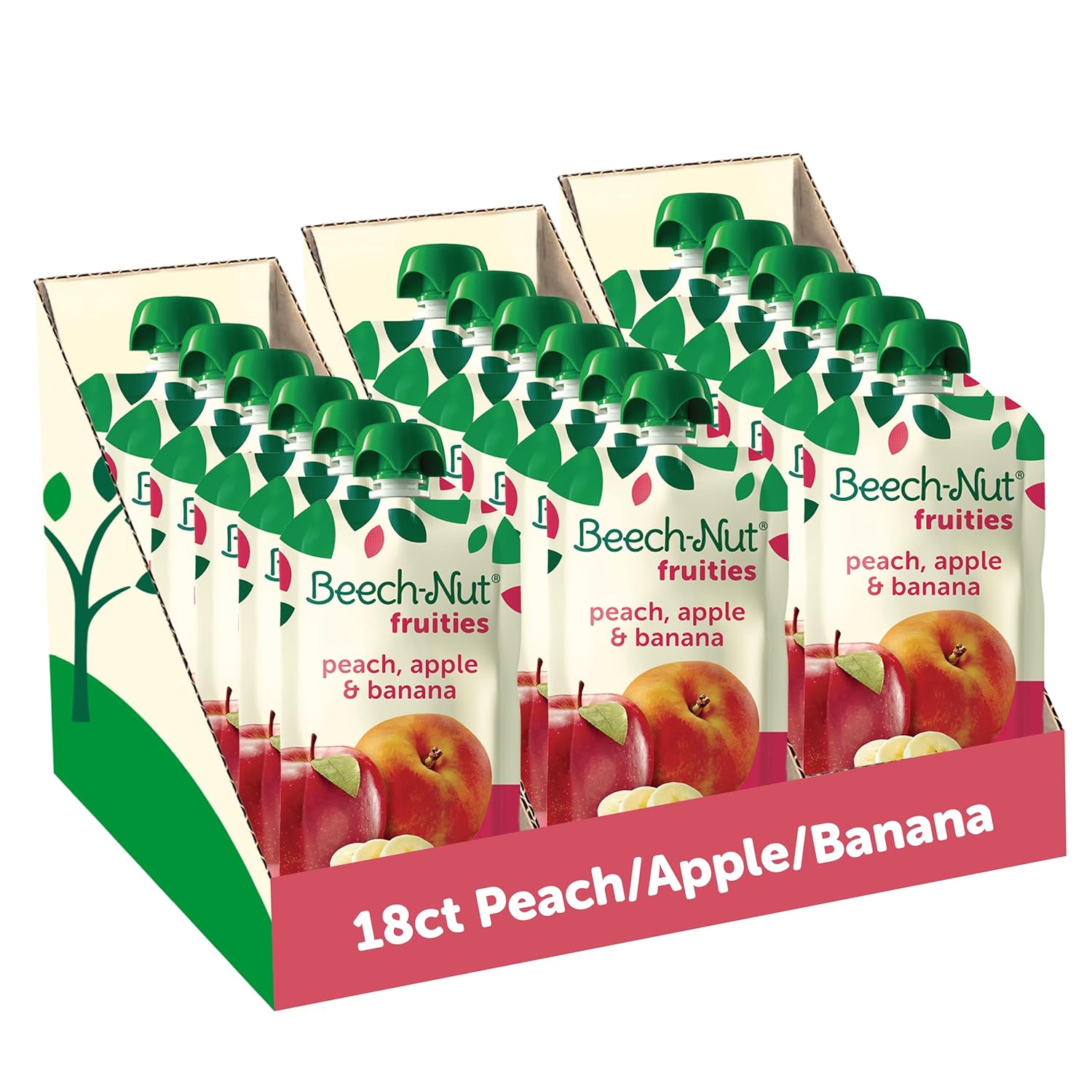 Beech-Nut Baby Food Pouches, Peach Apple Banana Fruit Puree, 3.5 Oz (18 Pack)