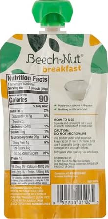 Beech-Nut Baby And Toddler Food Pouches Are Made With Real Ingredients And Packed In Convenient Pouches For On-The-Go Feeding. Our Delicious Breakfast Blend Contains Banana, Strawberry And Whole Milk Yogurt For A Nutritious Way To Start Your Toddler'S Day. This Stage 4 Pouch Is Ideal For Your 12+ Months Old Toddler