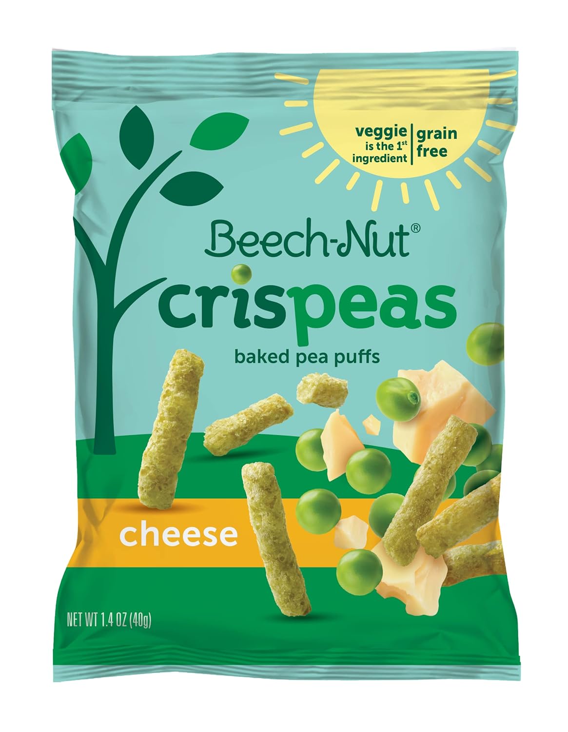 Beech-Nut Cheese Crispeas are a crunchy, savory snack your toddler will love to munch on at home or on the go. With veggies as the first ingredient, this baked toddler snack is a fun way to add more veggies to your tot's diet. Crispeas are grain free, gluten free, and non-GMO. As a stage 4 snack, this snack is ideal for children 12 months and up. This product should only be fed to seated, supervised children who are accustomed to chewing solid foodsVeggie is the first ingredientāmade with 85% pea flourPerfect size and texture for self-feeding toddlersNo artificial preservatives, colors or flavors and no added sweetenersGluten-Free & non-GMO (made with ingredients that are not genetically modified)