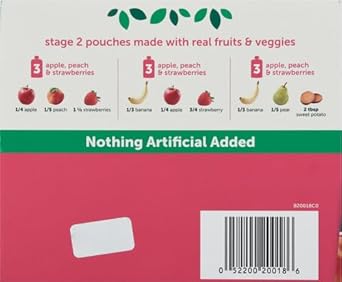 Beech-Nut Baby And Toddler Food Pouches Are Made With Real Ingredients And Packed In Convenient Pouches For On-The-Go Feeding. This Variety Pack Contains (3) Banana, Apple, Strawberry, (3) Apple, Peach, Strawberries And (3) Banana, Pear, Sweet Potato--All Gently Cooked With Indirect Heat To Preserve Flavor And Nutrients. Our Baby Food Pouches Are A Delicious Way To Squeeze More Fruits And Veggies Into Your Little One'S Day. This Stage 2 Puree Is Ideal For Your Baby 6 Months And Up