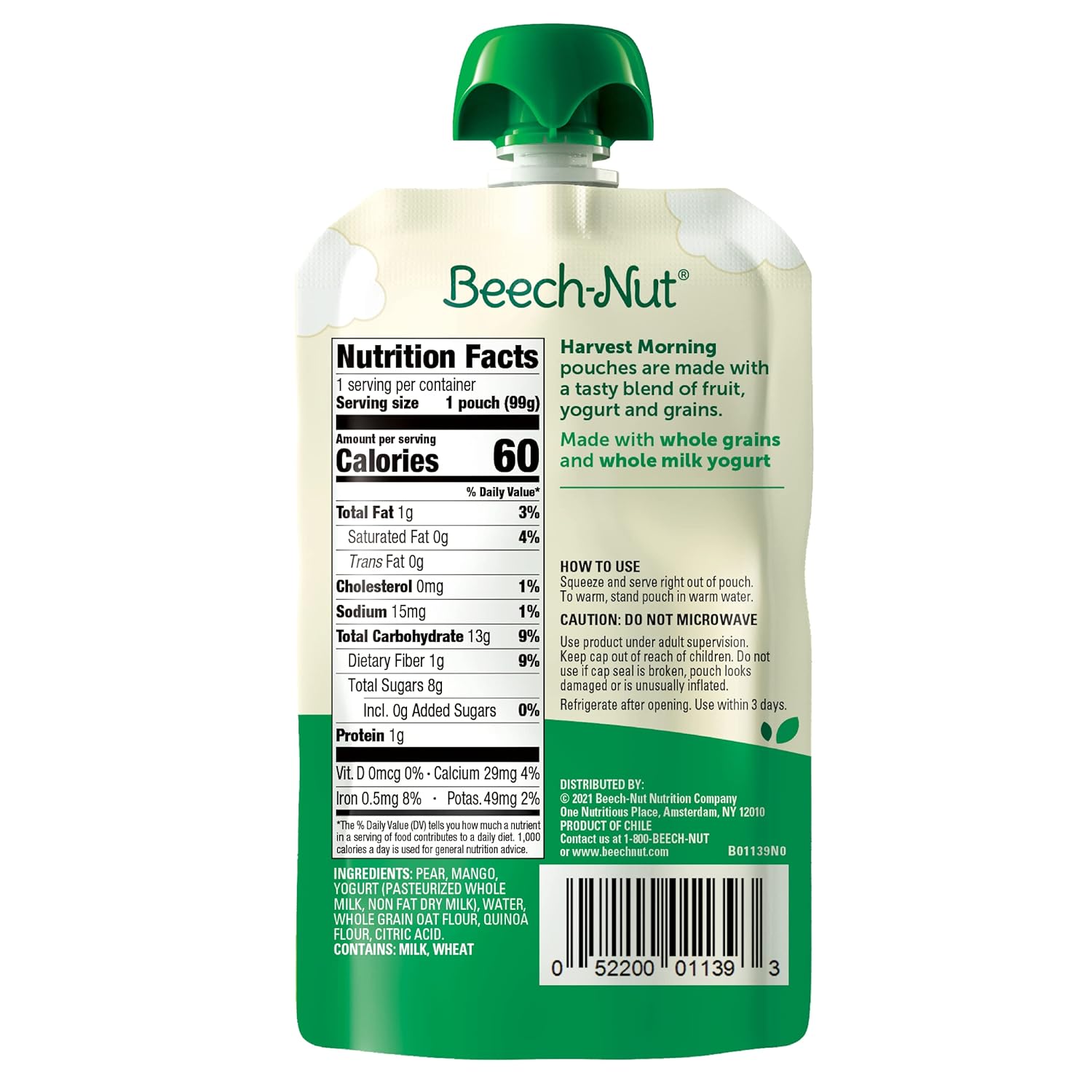 Beech-Nut Toddler Food Pouches Are Made With Real Ingredients And Packed In Convenient Pouches For On-The-Go Feeding. Our Harvest Morning Fruit, Yogurt & Grain Blend Contains A Puree Of Pear, Mango, Whole Milk Yogurt & Granola. This Stage 4 Pouch Is Ideal For Your 12+ Months Old Toddler